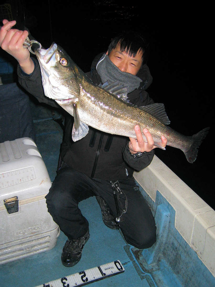 ■シーバス・ナイト×12匹 +放流サイズ×3匹 ■シーバス・デイ×4匹 ■コメント この日は、ナイトメインでデイを少しのコースで出船。 ナイトでは幸運な事に、最大級82㎝を含め70アップを3匹キャッチでき、満足のできる釣果となりました。 ナイトは数は釣れませんがサイズが良いので、今後に期待したいです。 ただ、今年は悪天候が続き、出船したくても中止が続いています。 早く春らしい陽気が続いて欲しいですね! ■シーバス・ナイト×12匹 +放流サイズ×3匹 □サイズ:50cm前後×1匹/55cm前後×2匹/58cm前後×2匹/61cm前後×2匹 /66cm×2匹/72cm前後×1匹/77cm前後×1匹/82cm前後×1匹 ■シーバス・デイ×4匹 □サイズ:60cm前後×4匹 |