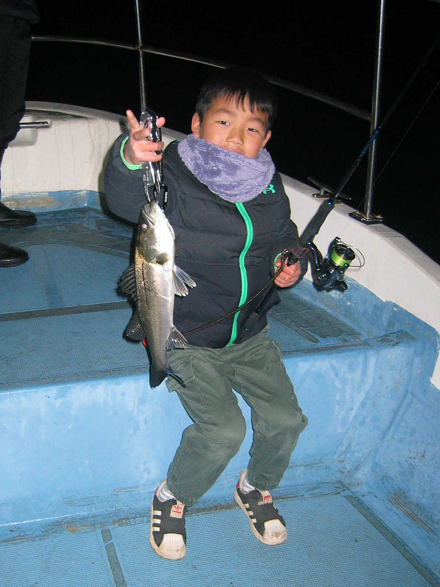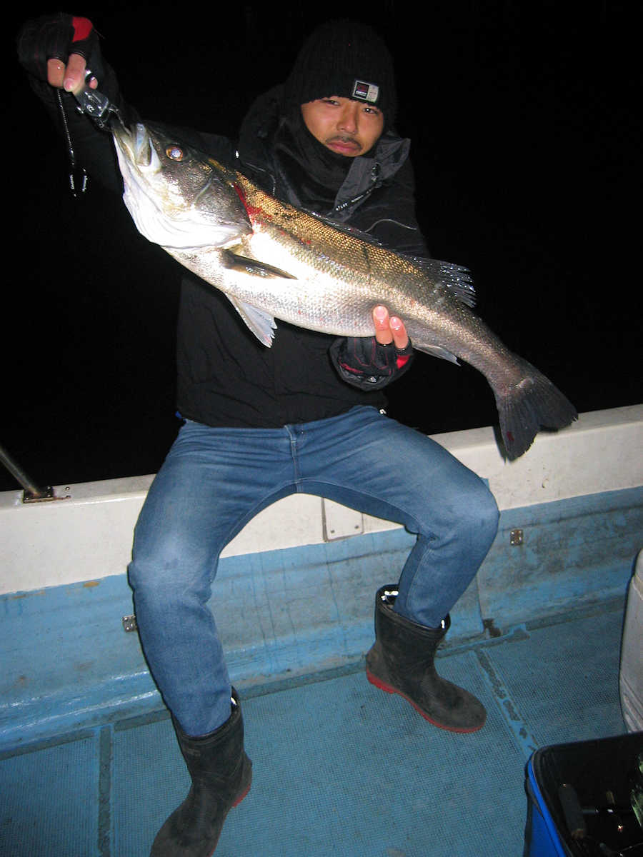 ■シーバス・ナイト×4匹 +放流サイズ×4匹 ■コメント ドカンっとヒットしたシーバスは70アップが4匹! こんな幸運もあるんですね! ボートからのルアー・フイッシング初挑戦のヒロくんも1匹キャッチでき、海の神様に感謝! 毎回の出船で、この日の様なミラクルな釣りができれば良いのですがね!(^^)b ■シーバス・ナイト×4匹 +放流サイズ×4匹 □サイズ:73cm×1匹/75cm×1匹/76cm×1匹/77cm×1匹 放流サイズ:35~45cm |