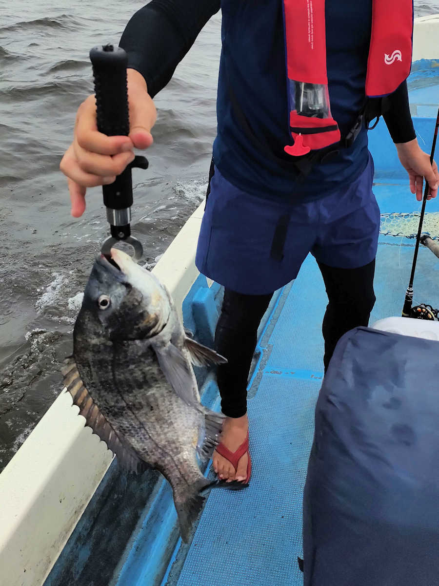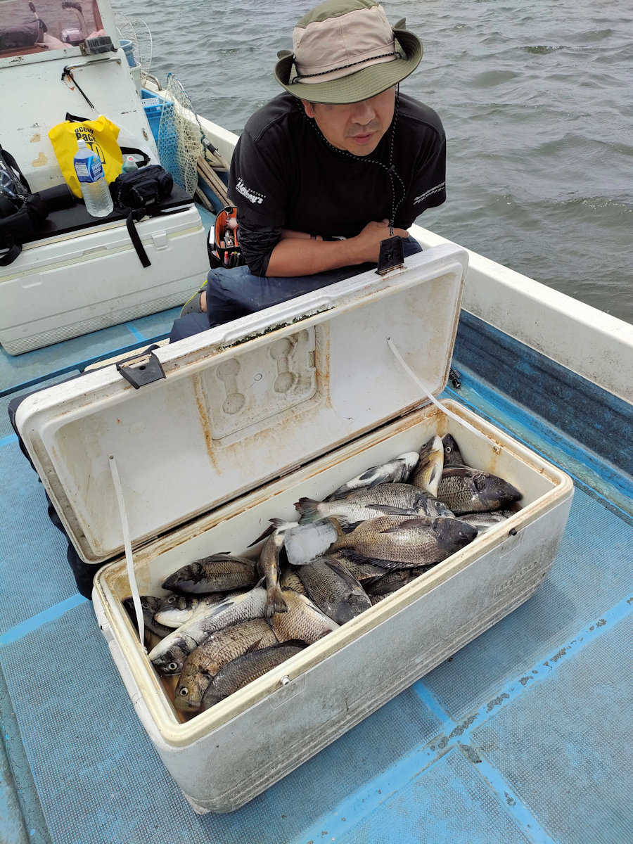 本日も2日前に降った大雨が心配でしたが、運良くニゴリが残っており、67匹(放流サイズ×10匹前後含む)の黒鯛をキャッチでき楽しい釣りができました。