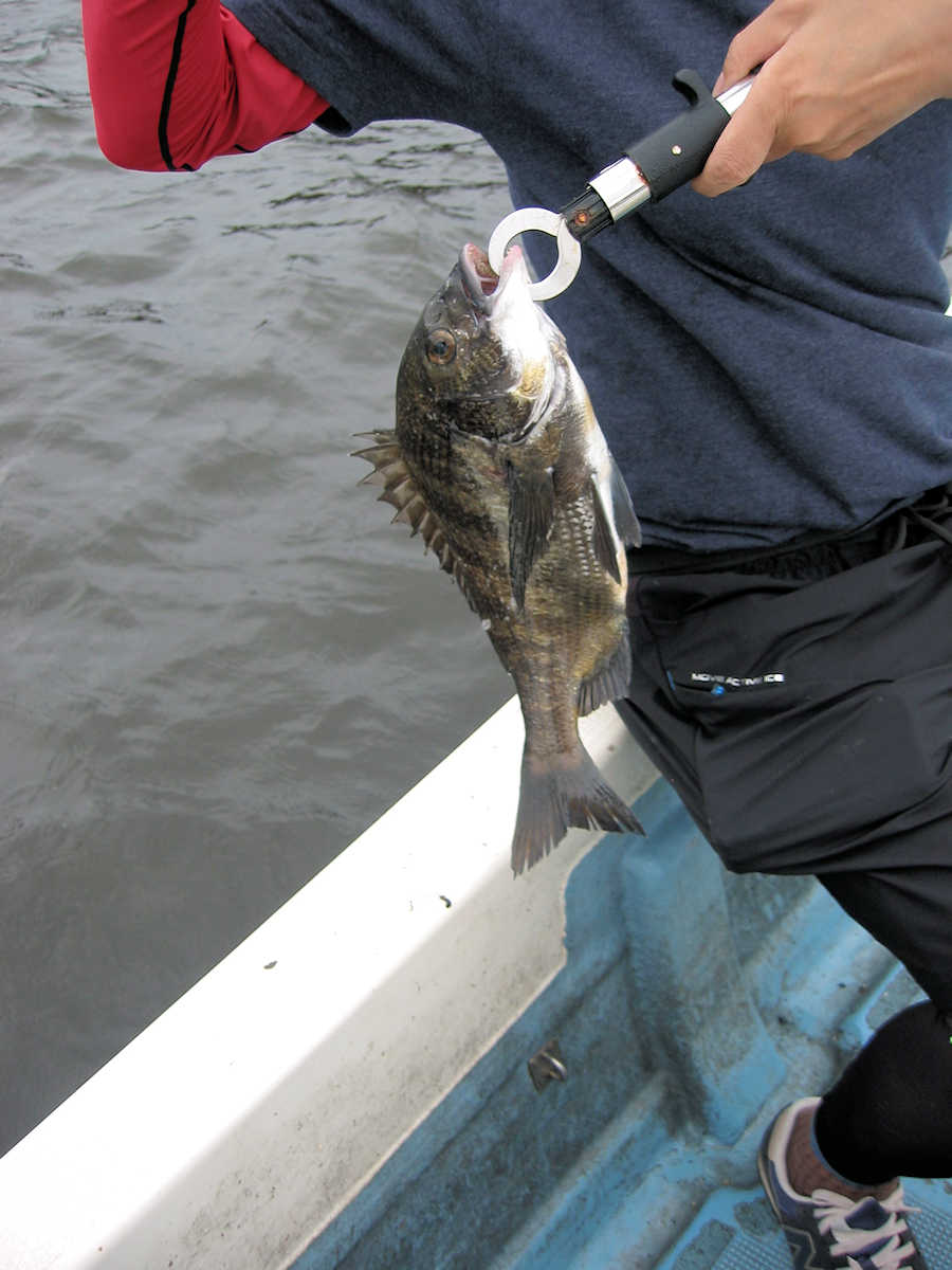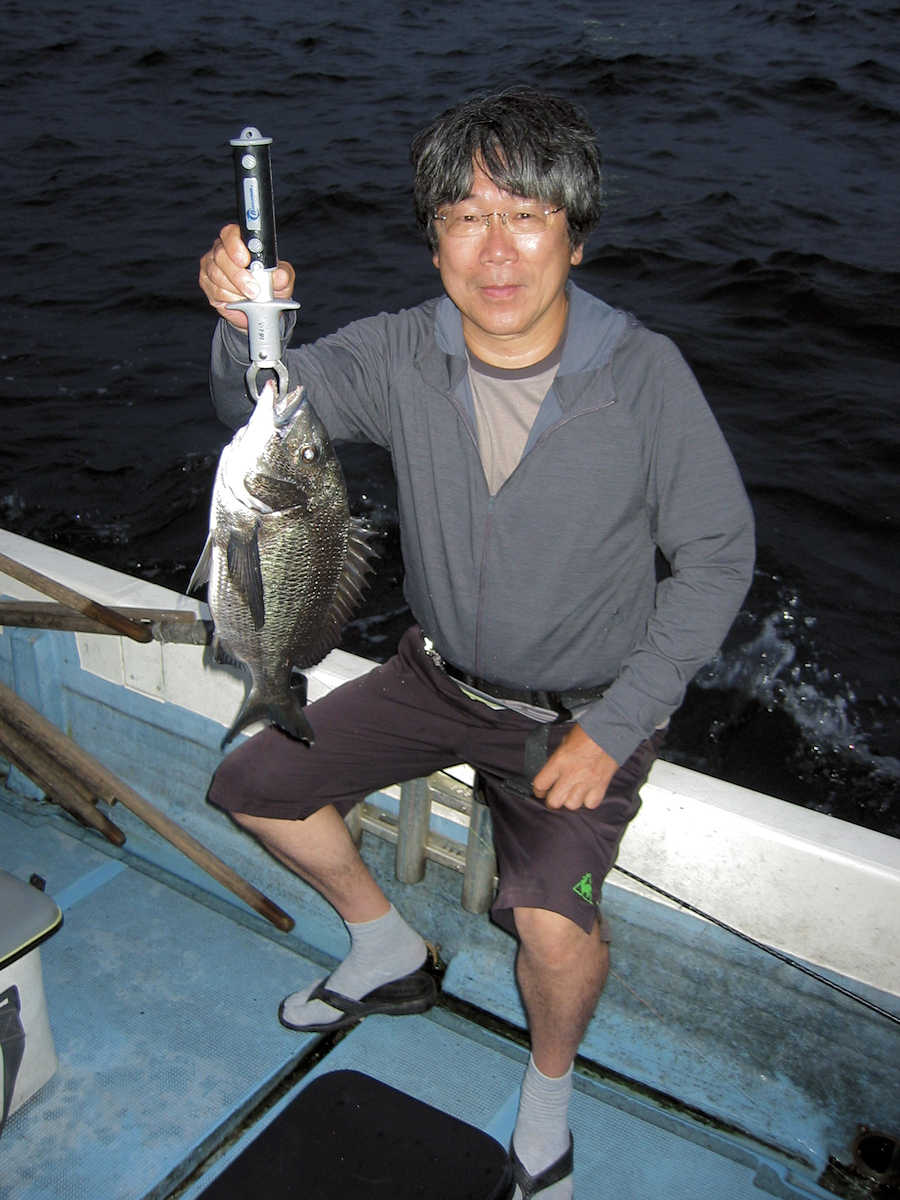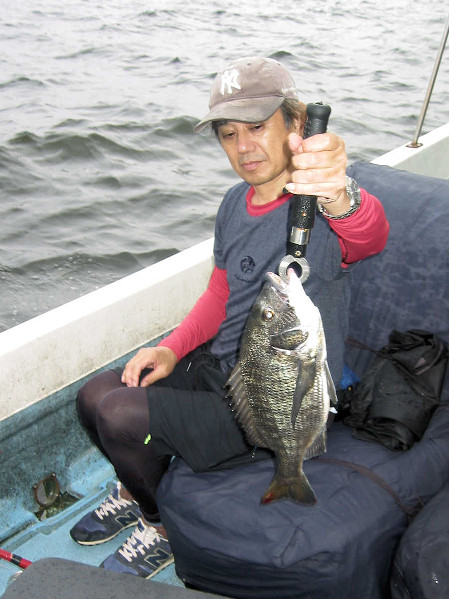 それでもアタリの多いポイントでは先頭入れ替えが激しく、仕掛けを1~5回入れるとアタリがあるので、「アッ!」との声と共に悔しそうな顔で、エサの付いていない針をブラブラさせながら、エサ付けのために後ろへ戻ってくる。