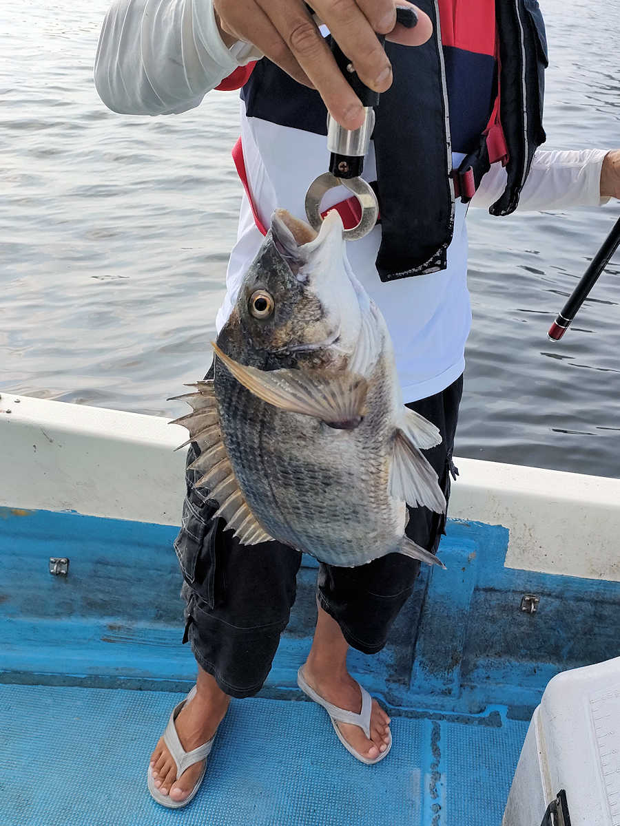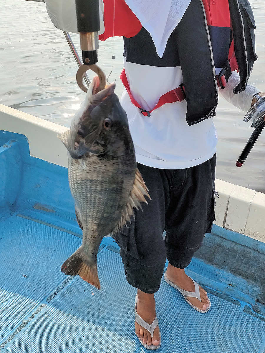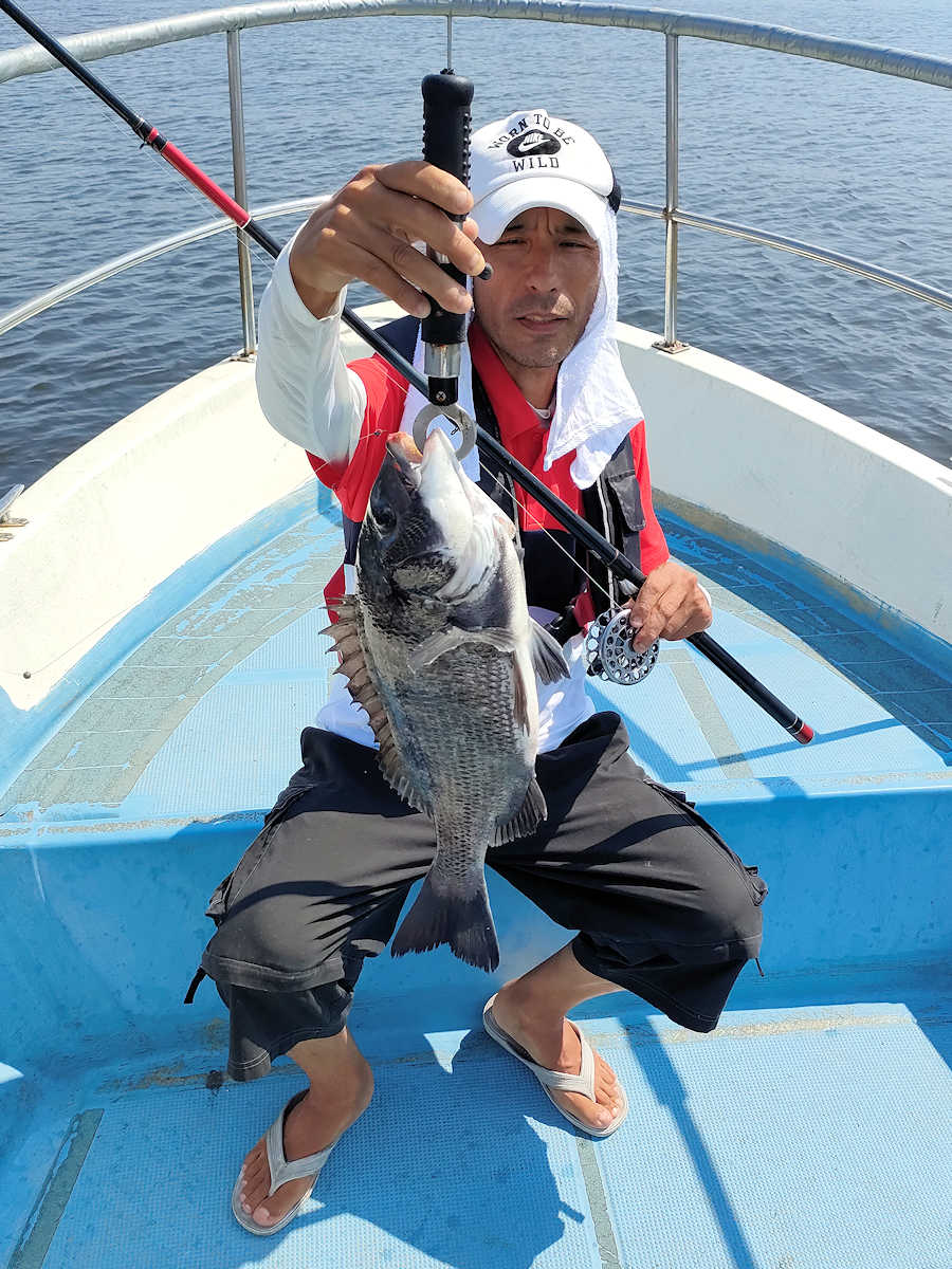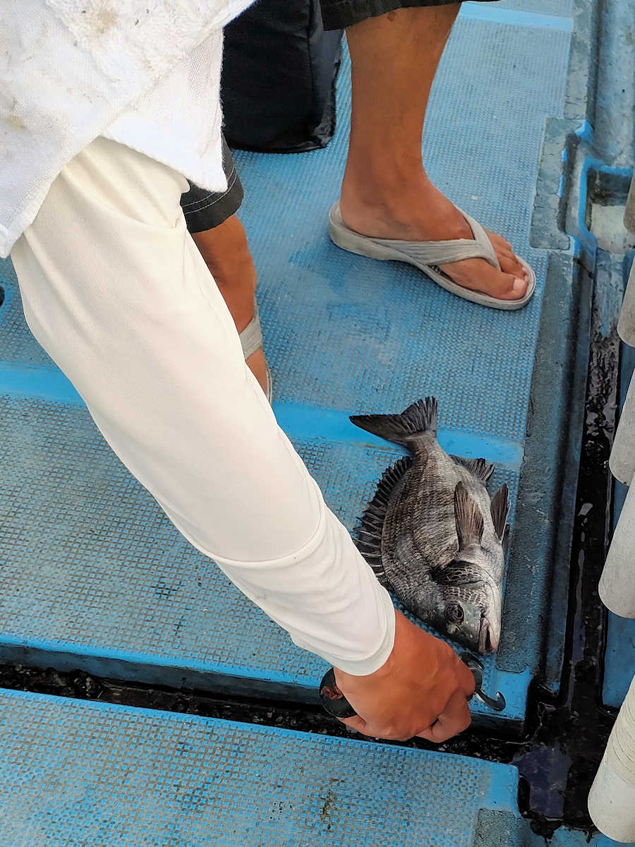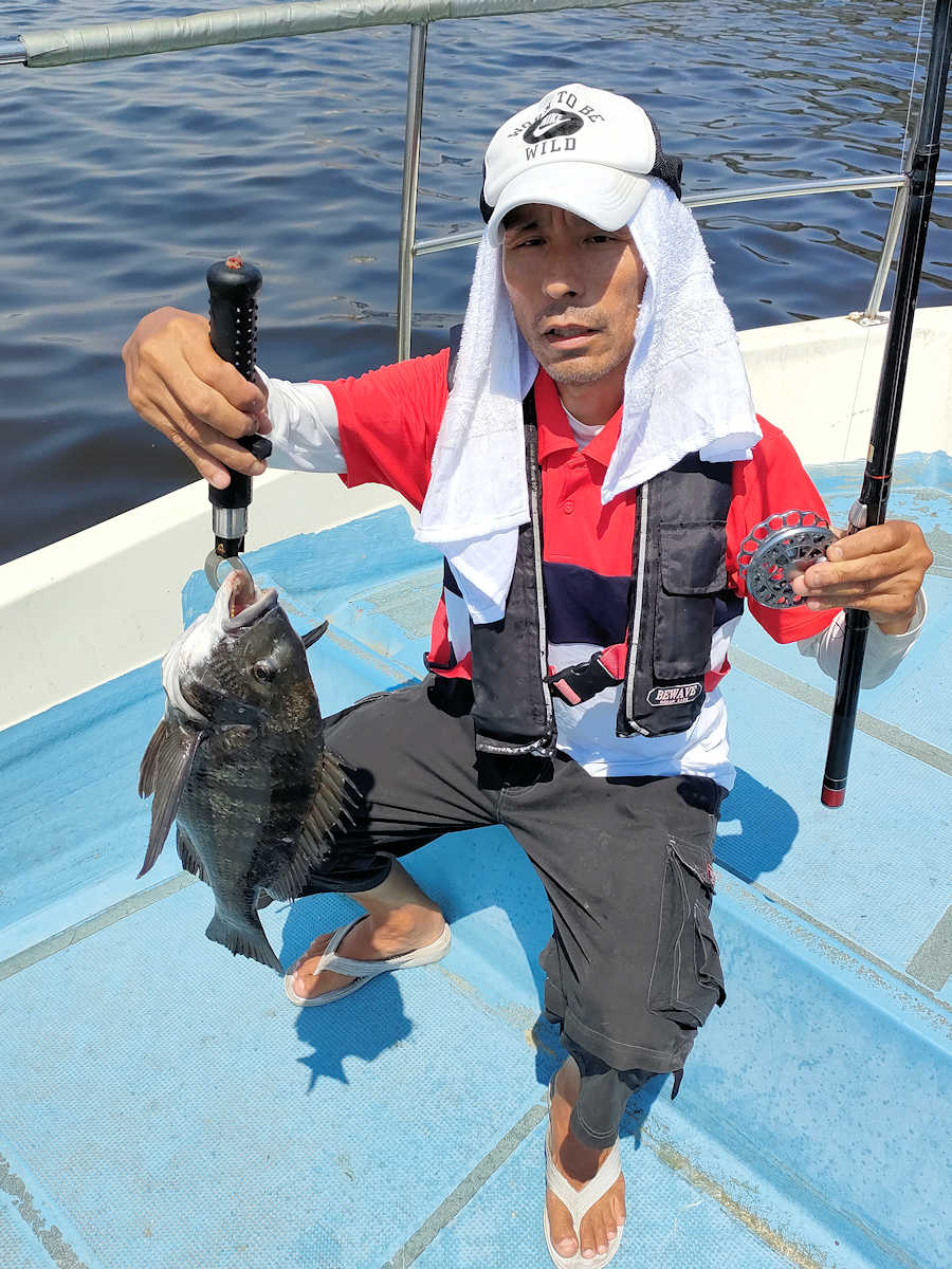 太陽が顔を出すとうんざりする暑さですが、65匹の黒鯛をキャッチでき楽しい釣りとなりました。