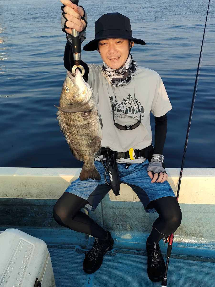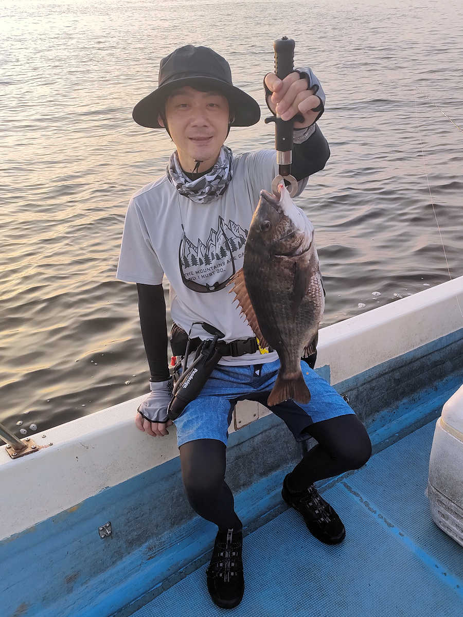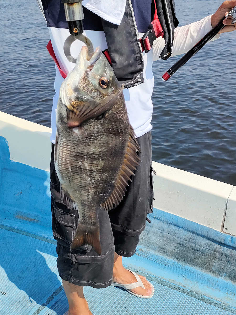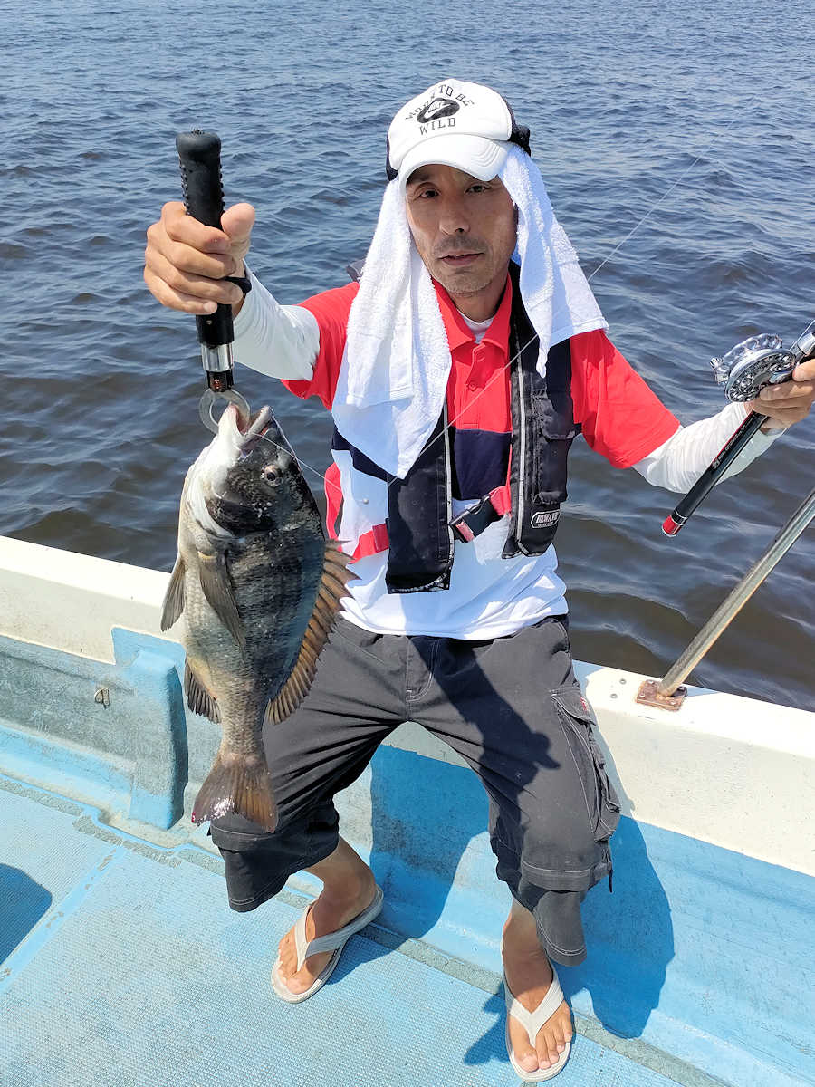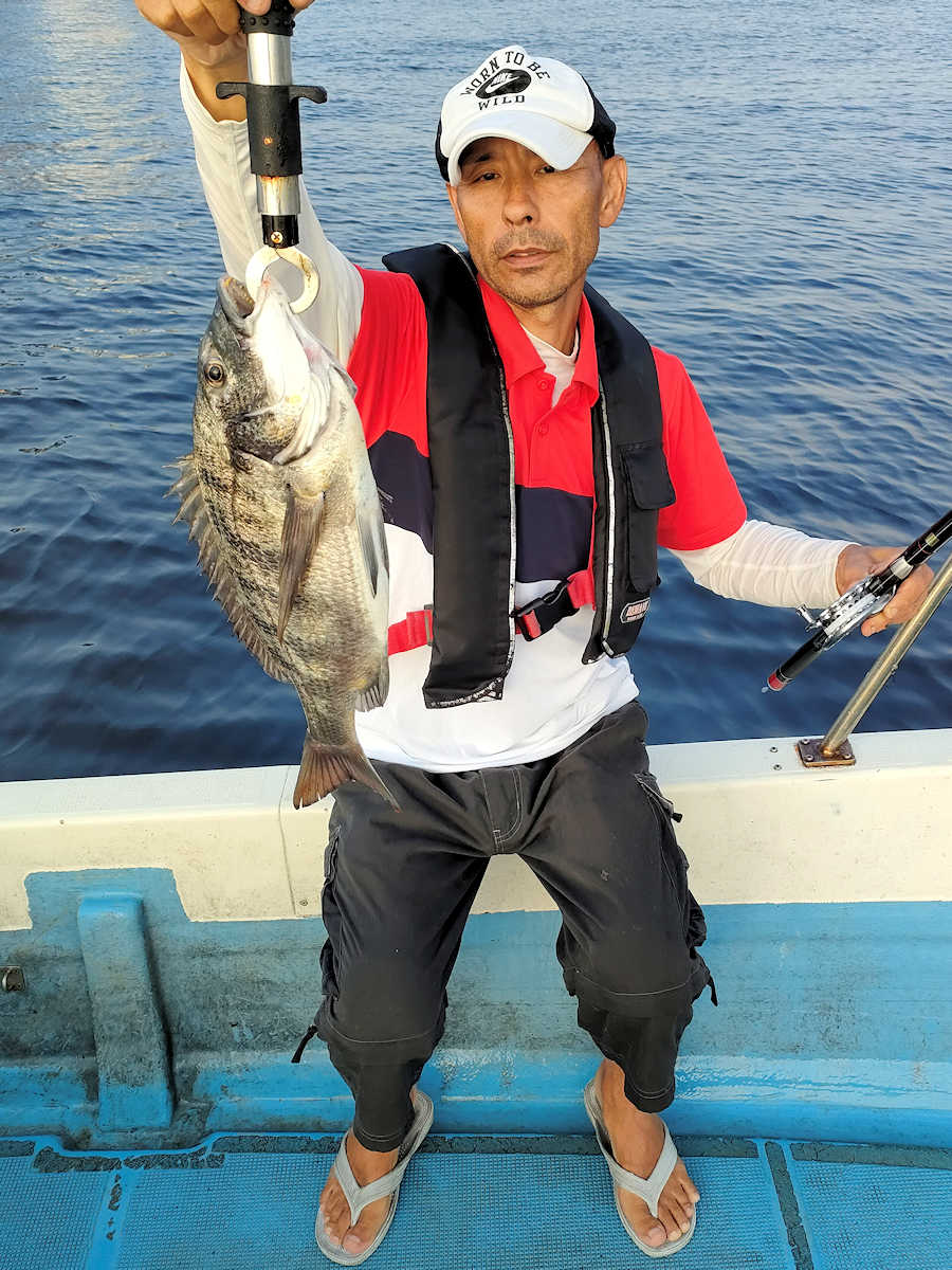 太陽が顔を出すとうんざりする暑さですが、65匹の黒鯛をキャッチでき楽しい釣りとなりました。