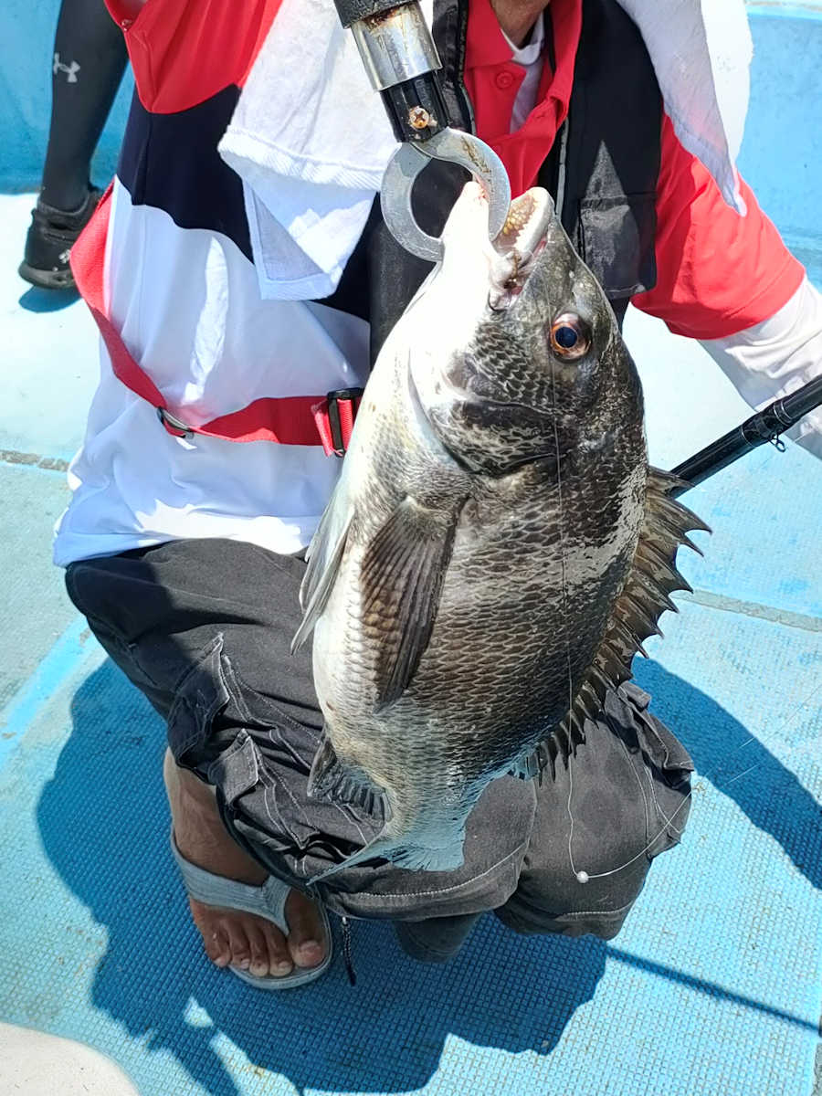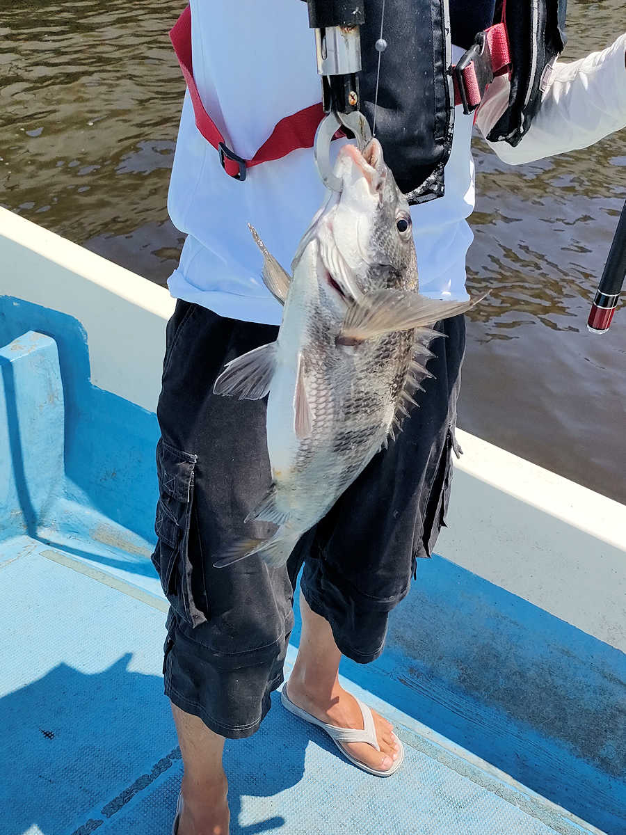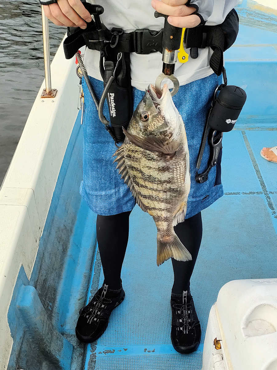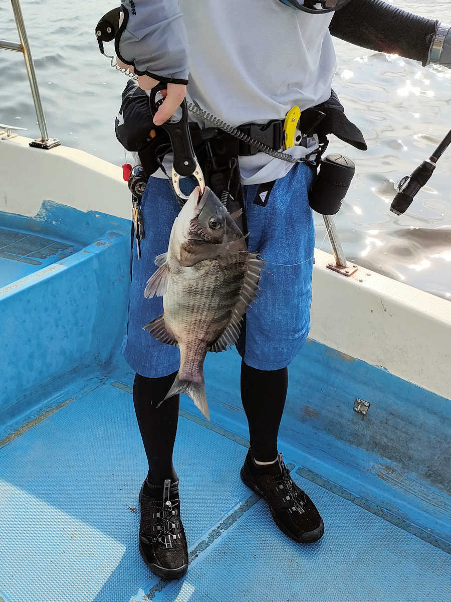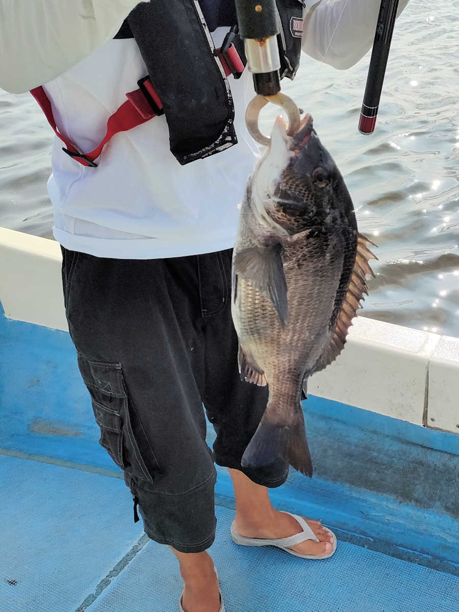 太陽が顔を出すとうんざりする暑さですが、65匹の黒鯛をキャッチでき楽しい釣りとなりました。