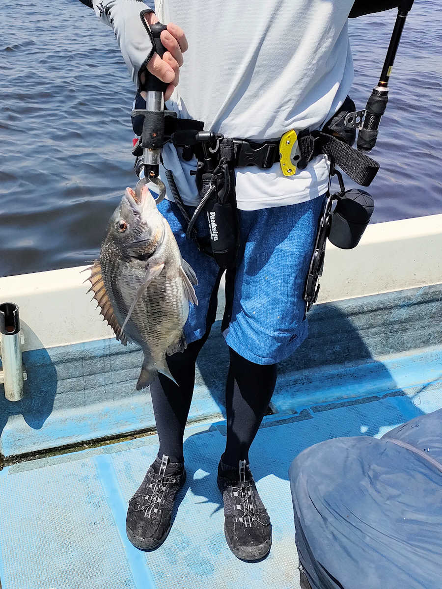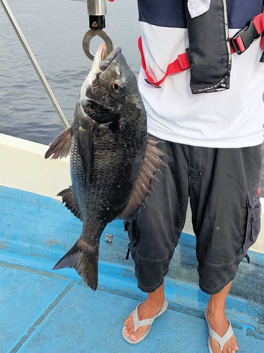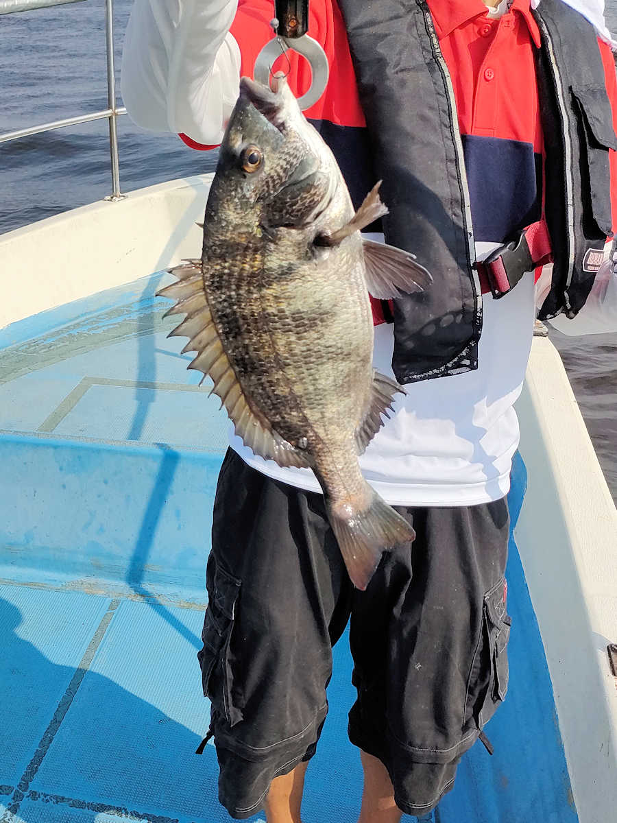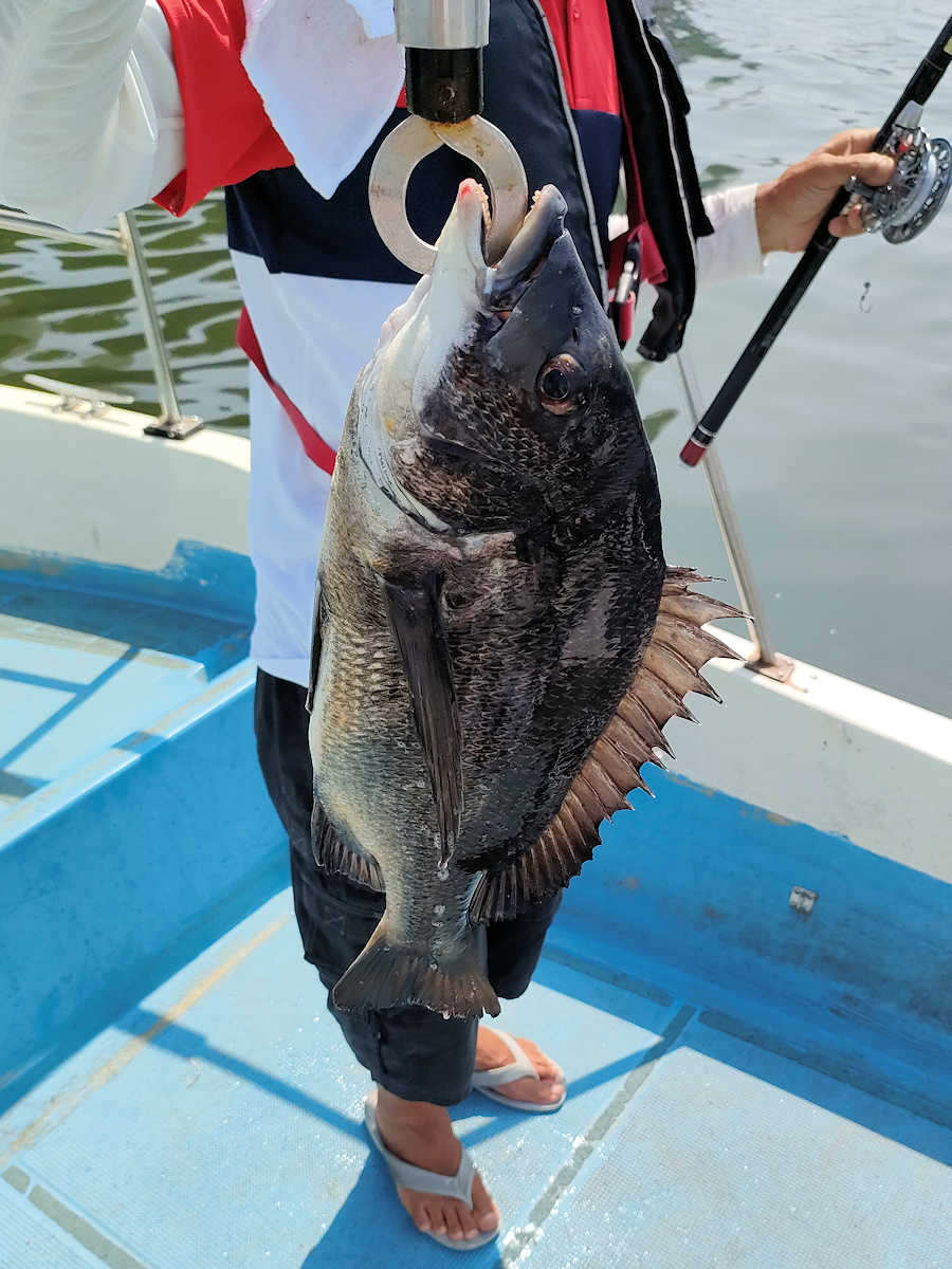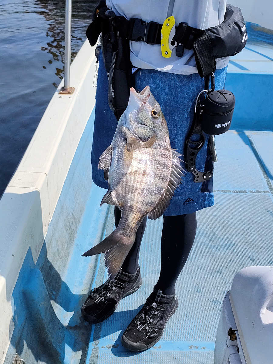 太陽が顔を出すとうんざりする暑さですが、65匹の黒鯛をキャッチでき楽しい釣りとなりました。