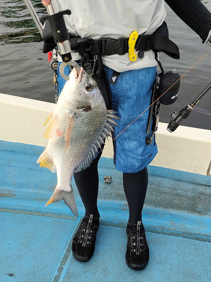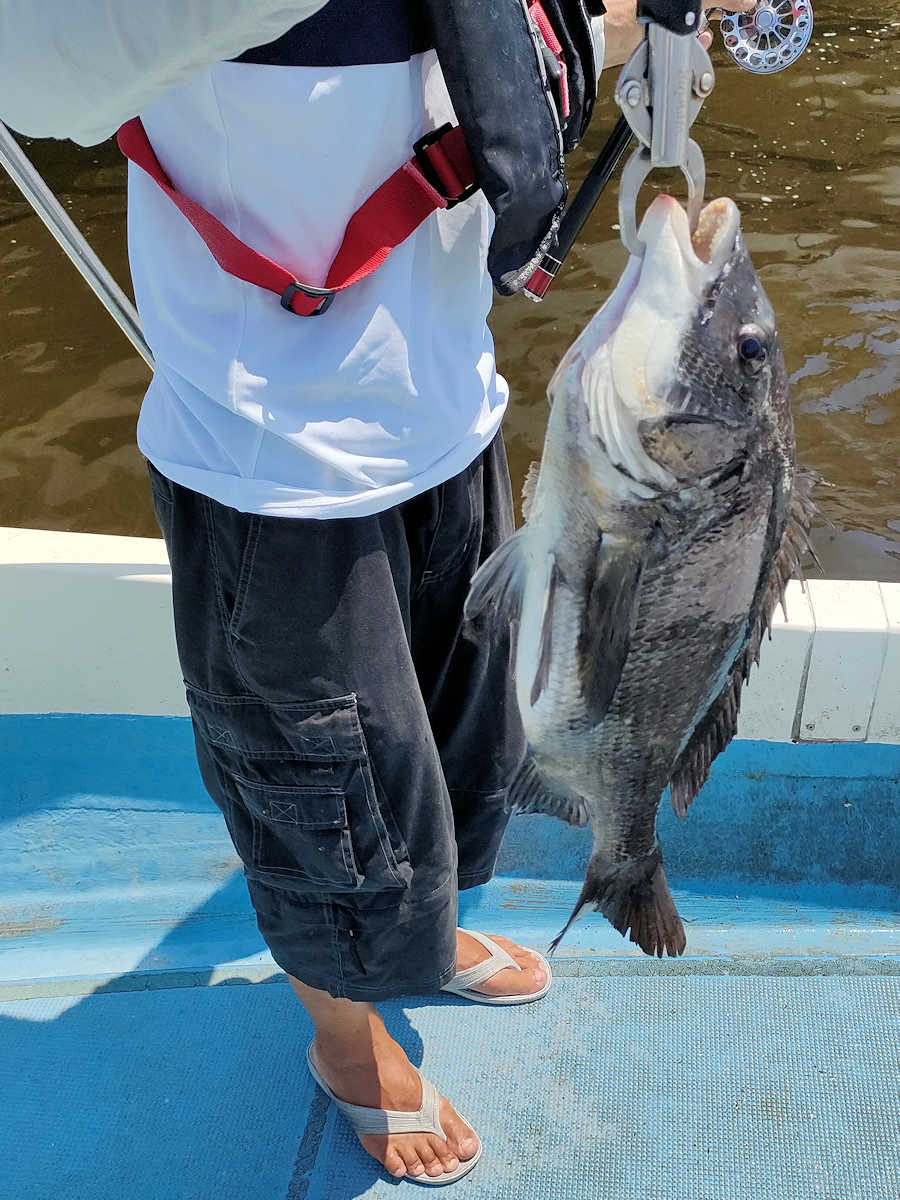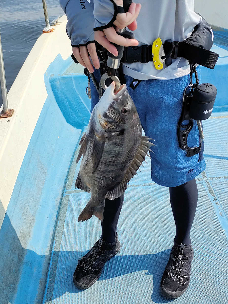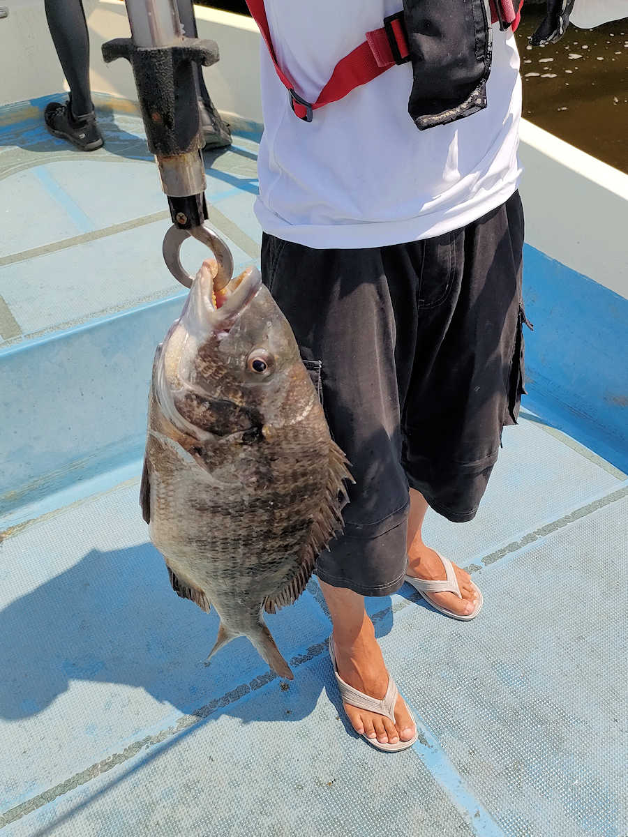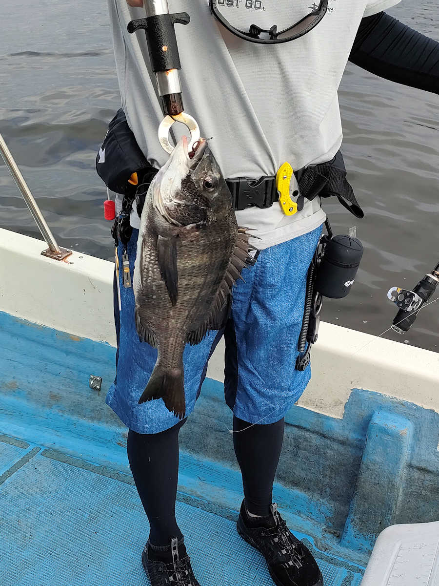 太陽が顔を出すとうんざりする暑さですが、65匹の黒鯛をキャッチでき楽しい釣りとなりました。