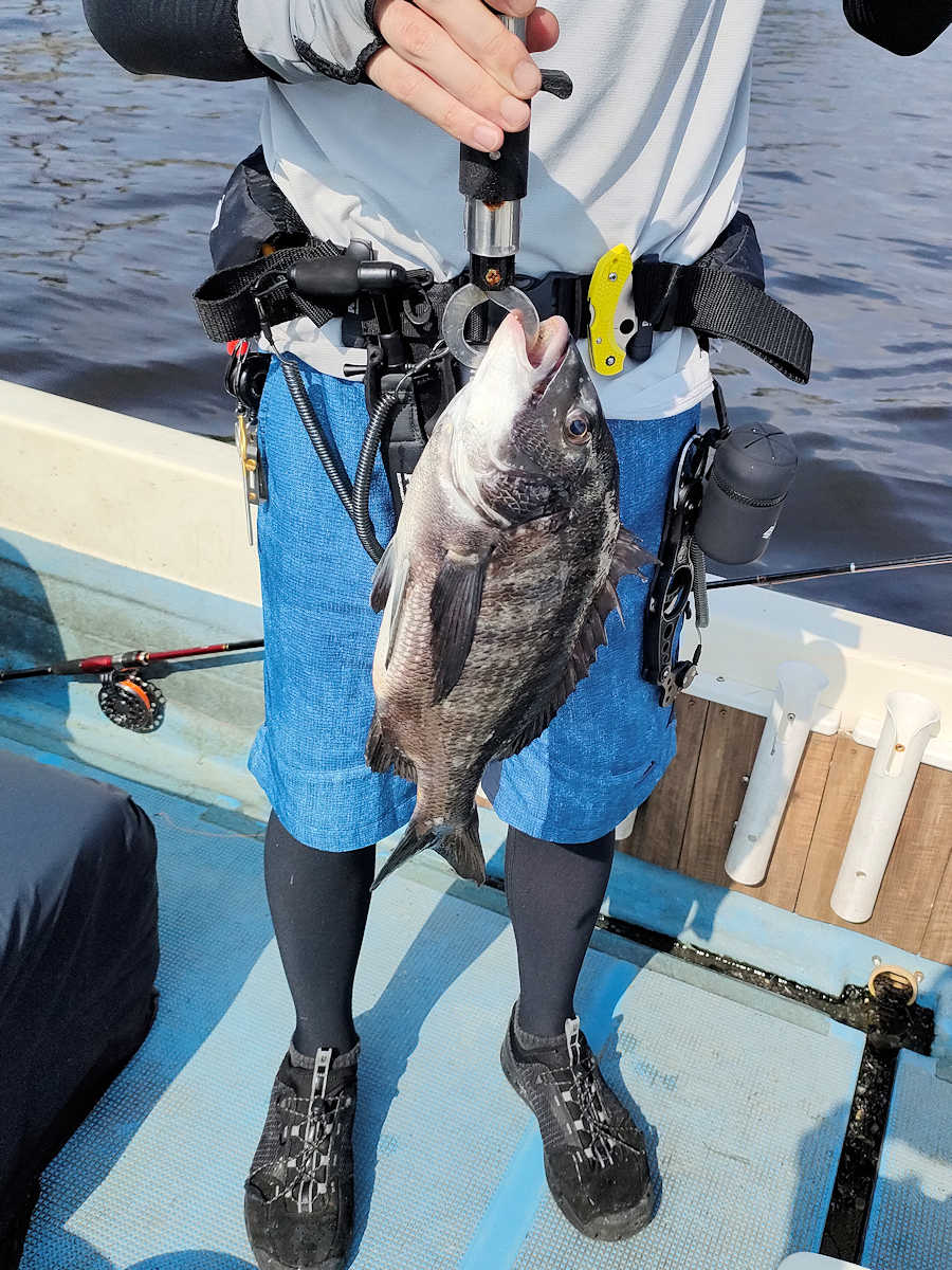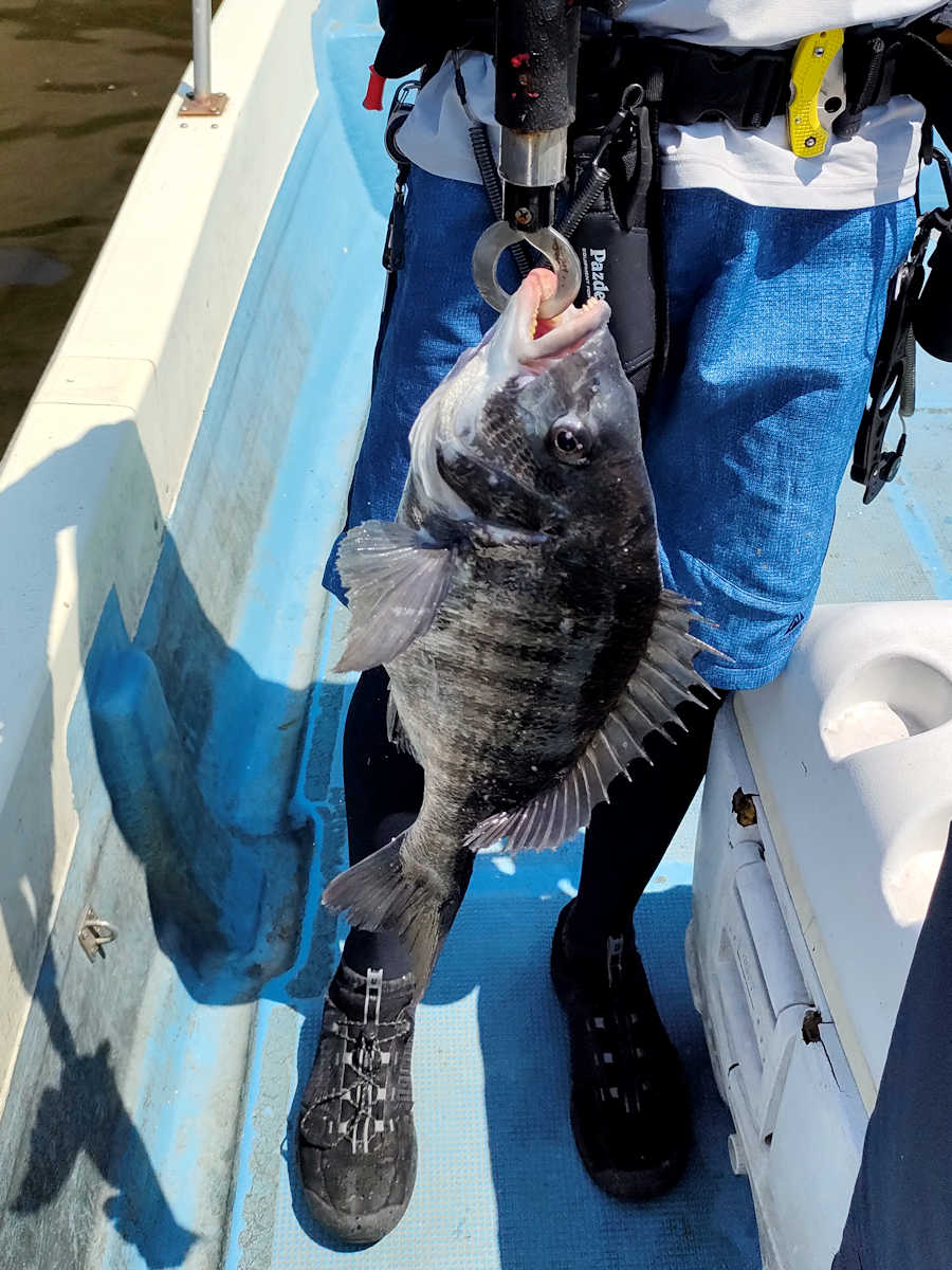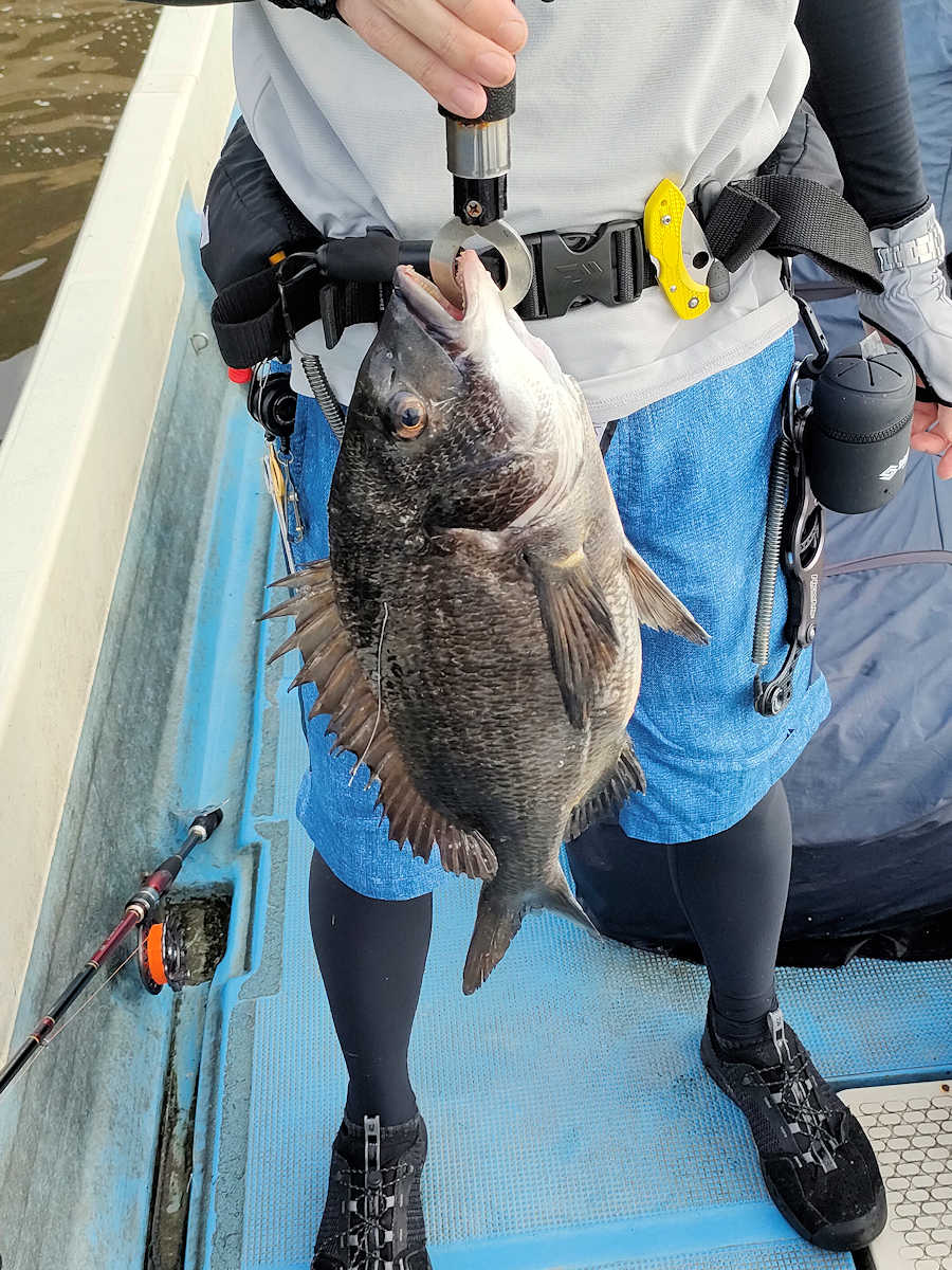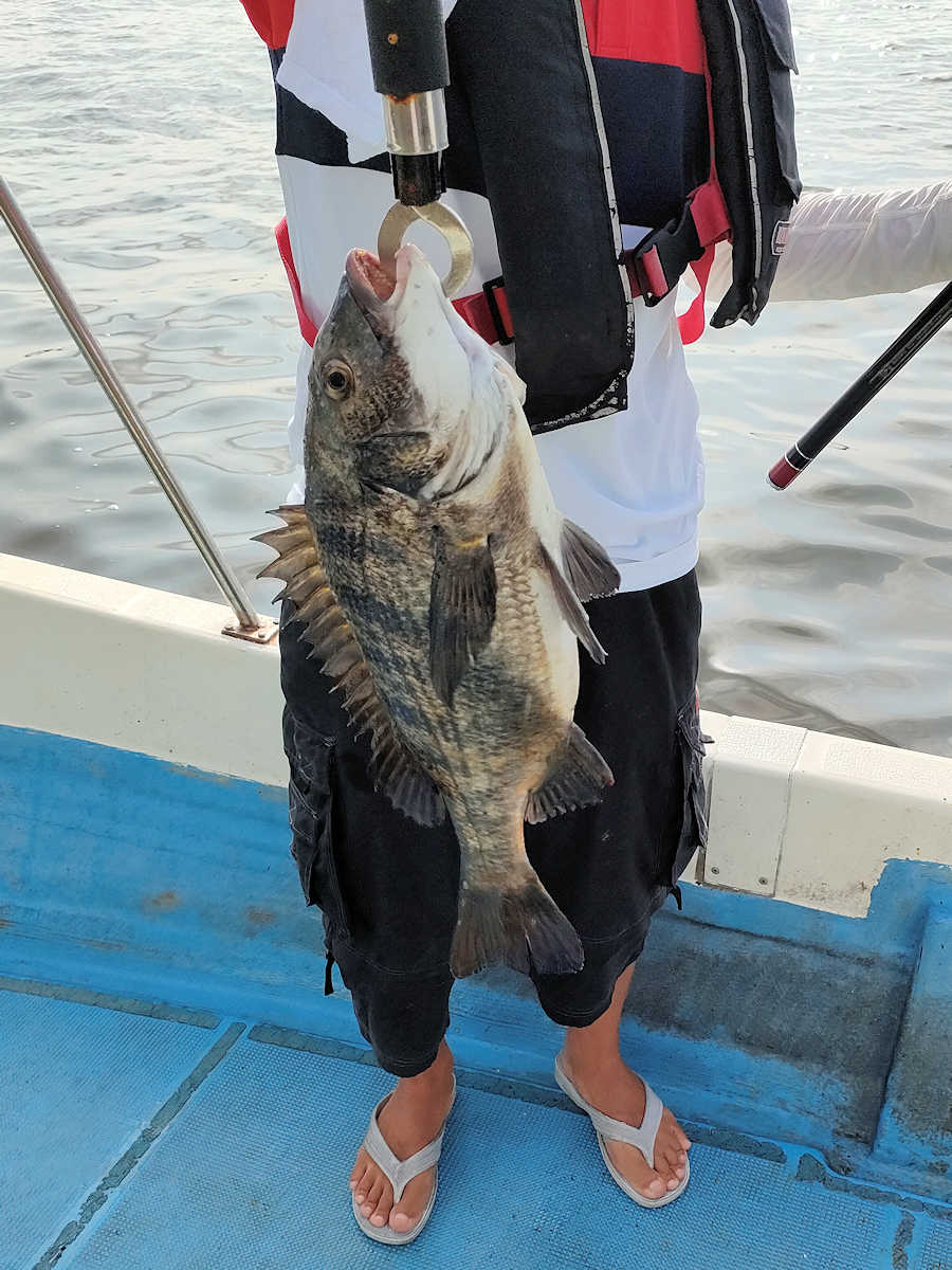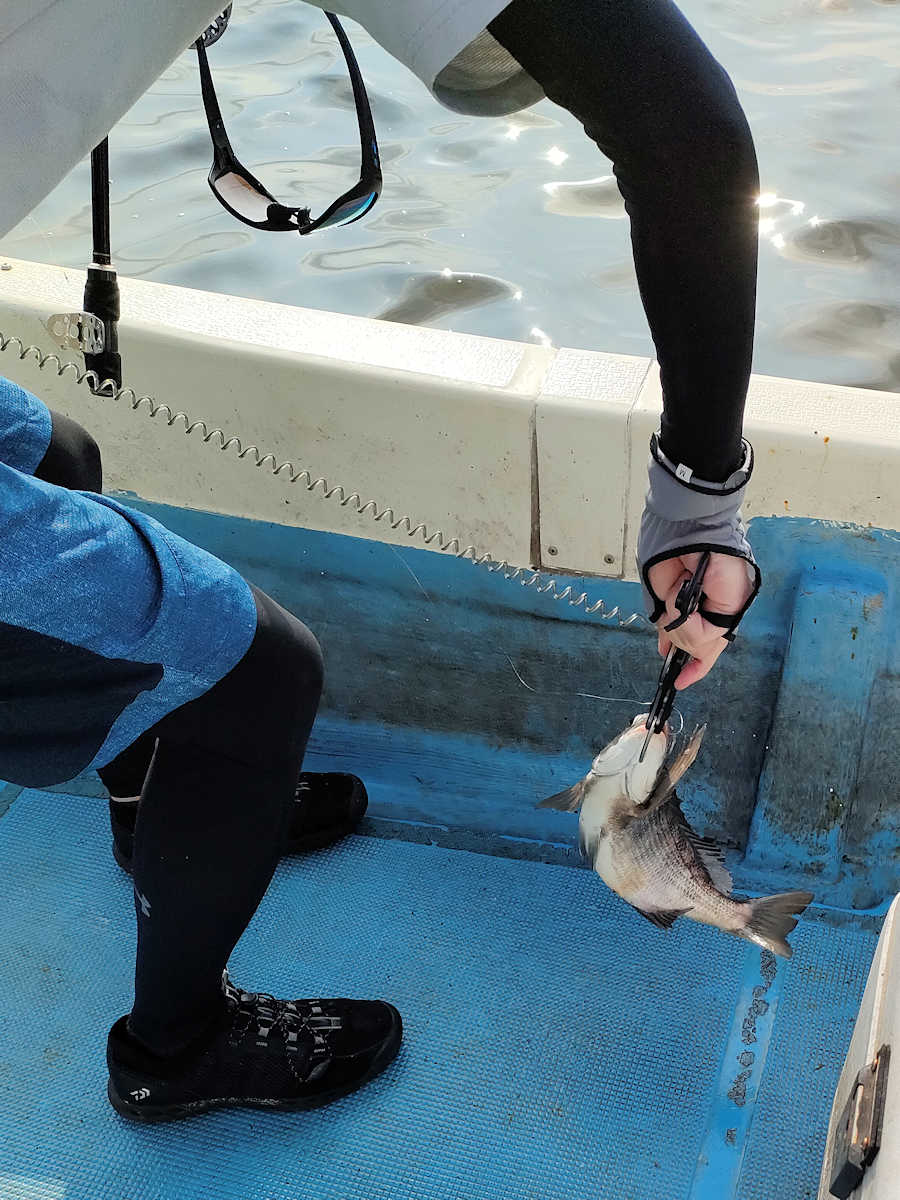 太陽が顔を出すとうんざりする暑さですが、65匹の黒鯛をキャッチでき楽しい釣りとなりました。