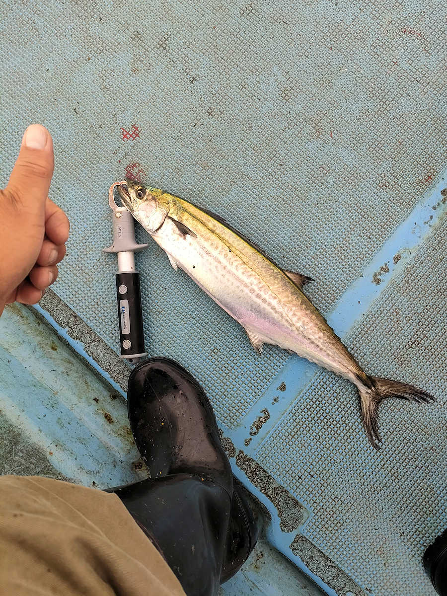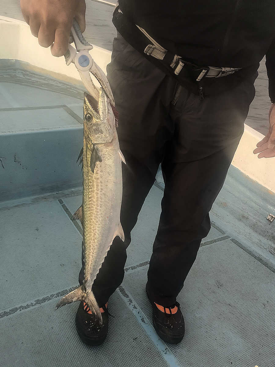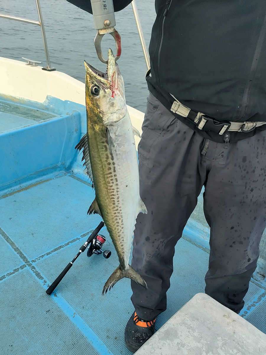 ■サワラ×ノーヒット!\(-o-)/ ■サゴシ級×4匹(バラシなし) ■タチウオ×4匹(中サイズ×3/大大サイズ×1) ■コメント ヤヤ強い風が吹き荒れ、狙いに行きたくとも行けなかったサワラ狙い。 久しぶりのナギ予報でしたので、待ちに待った出船となりました。 結果、サワラサイズは釣れず、サゴシ級が4匹釣れただけでしたが、久々に体験するヒットした瞬間の重量感と暴れ具合は、極たまにしか訪れない感動的な瞬間でした。 サイズが大きければ良かったのですが、サゴシ級だけで時間となり終了。 チョッピリ悲しいサワラ狙いとなりました。 明日以降、再びヤヤ強い風が続く予報、狙いに行きたくても狙いに行けない日々が続きます。 |