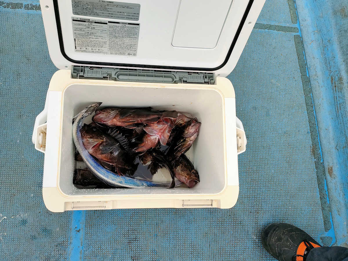 ■カサゴ×10匹ぐらい + 放流サイズ×8匹ぐらい ■シーバス・ほんのチョッピリナイト× 58cm級のバラシと30cm級のヒットが5匹ぐらい ■シーバス・ほんのチョッピリデイ× ノーバイト ■サワラ級× バラシが1匹だけ ■タチウオ× 小サイズが1匹 ■コメント アチャー! 酷い釣果で申し訳ございません。 全ての魚種で良いとこなしでした。ペコリ 久しぶりのカサゴ狙い、時期的にソロソロと思い狙ってみましたが、チイサイズすら釣れない状況で、アチコチのポイントをチェックして回る釣りとなり、キープサイズを10匹ぐらいキャッチするのが精一杯でした。 シーバスはナイトとデイでポイント移動の際に狙い、時間的に『ほんのチョッピリ』でしたが、キープサイズのキャッチはありませんでした。 本命のサワラは、釣り初めにサワラ級のバラシがあっただけで終了。 船頭の野生の勘はダメダメ状態のまま、良いところなしで終わってしまいました。 釣れるポイントへお連れできず、申し訳ございません。 |