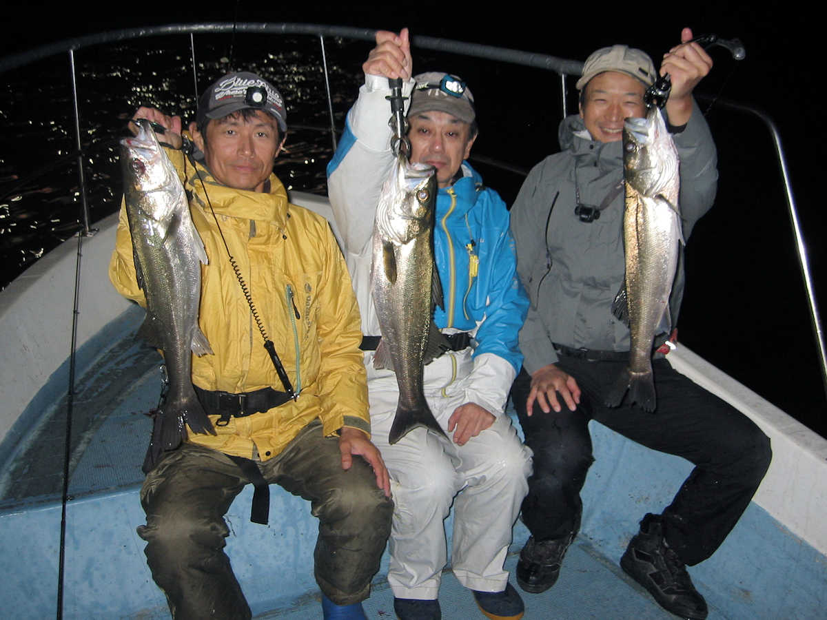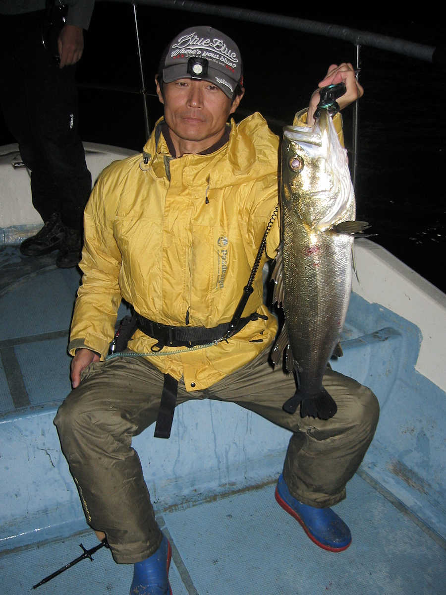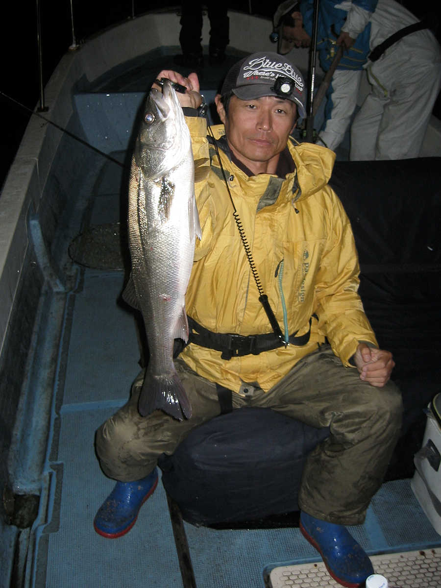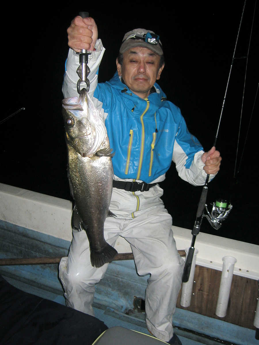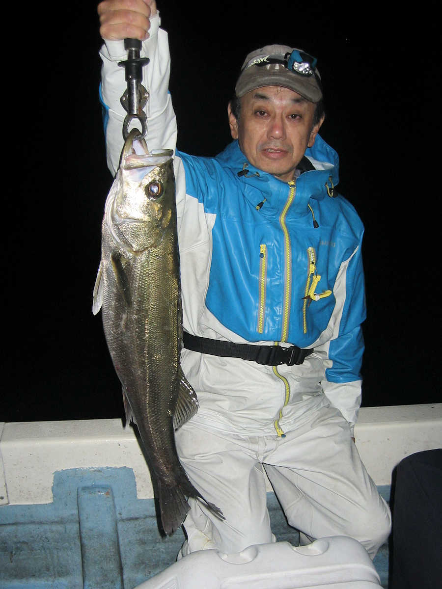 ■シーバス・ナイト×18匹ぐらい +チイサイズのヒット×3匹ぐらい ■シーバス・デイ×24匹ぐらい +チイサイズのヒット×20~30匹 ■サワラ×ノーバイト(30分攻めて終了) ■タチウオ×25~30匹 ■コメント 土日はヤヤ強い風が吹き出船中止。 やっと風が収まり、シーバス狙いメインで出船できました。 ナイトでは幸運な事に平均サイズ60cmの群れに出会い、この時期らしいお腹の太ったサイズを18匹キャッチできました。\(^o^)/ デイのポイントへ移動の途中でサワラを狙いましたが、釣れる気がしないので30分でサッサと諦めシーバスのポイントへ移動。 デイのポイントでは50cm級がポツポツと反応し、たまに60cm級がヒットする流れで楽しむ事ができました。 狙うポイントによってはチイサイズの反応が多く、トリプルヒットもありました。 帰り道、サワラ狙いのポイントを見ながら走っていると、大型の遊漁船が一艘のレジャーボートの側でタチウオの群れを発見し、釣り始めると良い感じでタチウオがヒット! 近づくとベイト反応があり当船もサワラとタチオウを狙ってみる。 するとタチウオばかりヒットするのでタチウオ狙いの釣りスタート! 無線で「釣れている」との情報が飛んだようで、大型の遊漁船が続々と集まり大船団になり、どの船も良い感じでタチウオが釣れている状況でした。 当船も、指2.5から3本のサイズを25~30匹釣れたので、偶然の出会いに感謝して帰港となりました。 サワラ狙いは今年も鳥が騒がないので暇な釣り方が続いています。 やっとシーバスが良い感じになって来たので、これからが楽しみです♪ ■シーバス・ナイト×18匹ぐらい +チイサイズのヒット×3匹ぐらい □サイズ:58cm前後×5匹ぐらい/61cm前後×12匹ぐらい/64cm×1匹 ■シーバス・デイ×24匹ぐらい +チイサイズのヒット×20~30匹 □サイズ:45cm前後×5匹ぐらい/53cm前後×3匹ぐらい/56cm前後×10匹ぐらい/60cm前後×4匹ぐらい/65cm×2匹 ■タチウオ×25~30匹 □指2.5本×10匹ぐらい/指3本×15~20匹 |