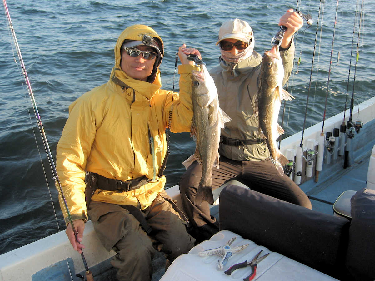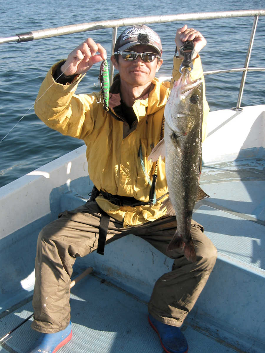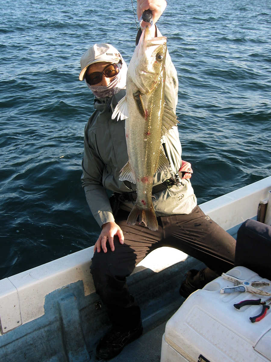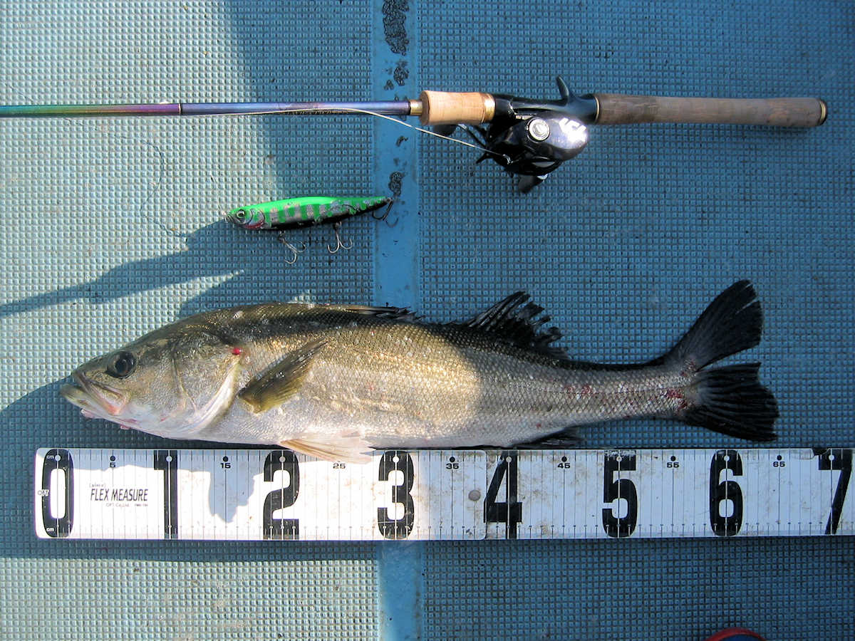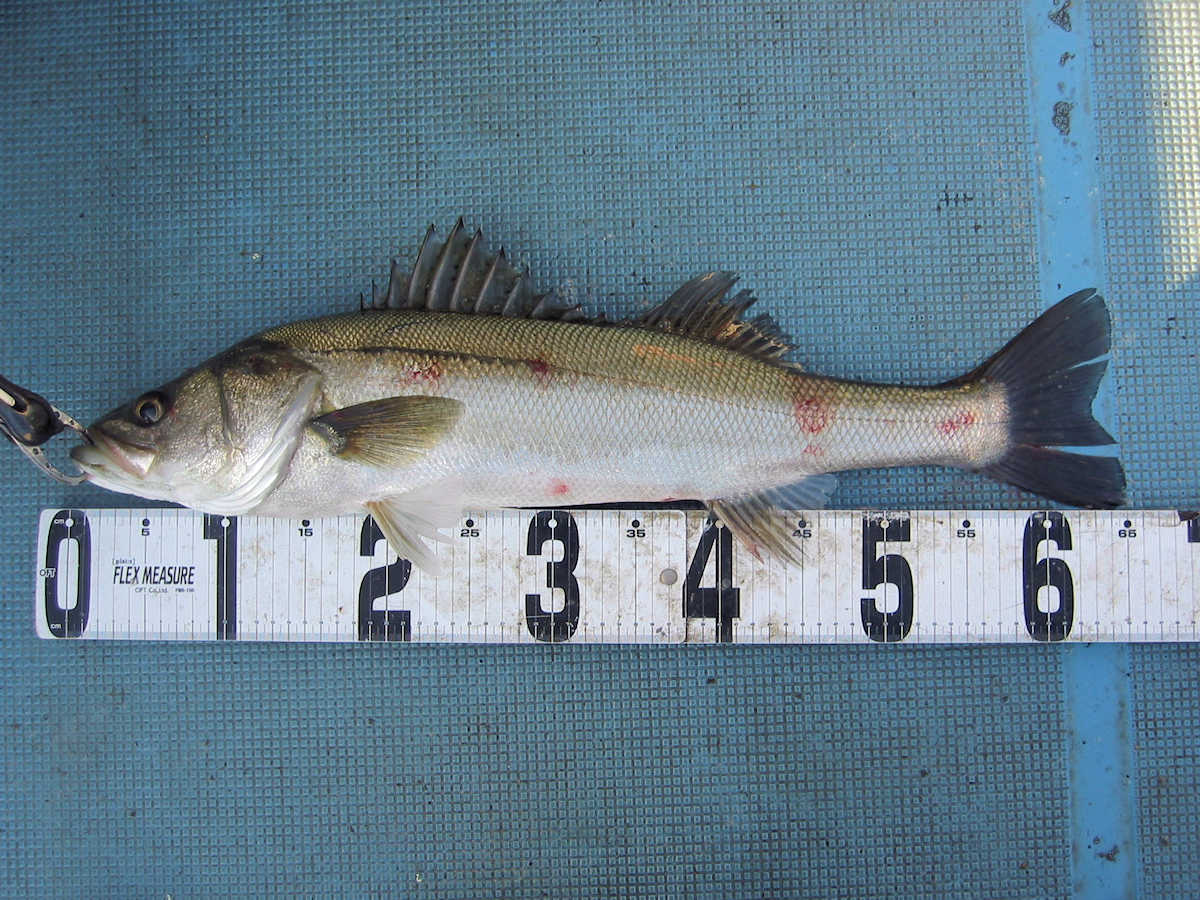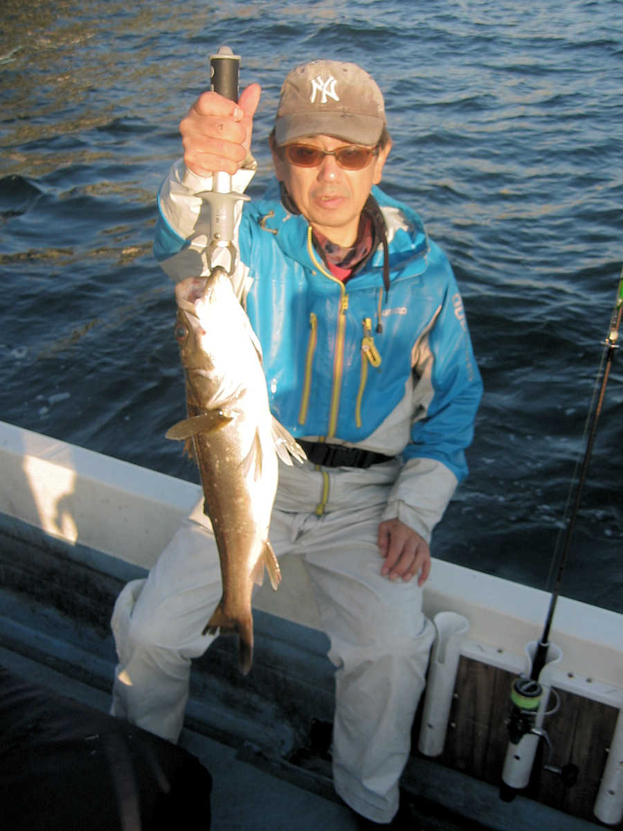 ■シーバス・ナイト×18匹ぐらい +チイサイズのヒット×3匹ぐらい ■シーバス・デイ×24匹ぐらい +チイサイズのヒット×20~30匹 ■サワラ×ノーバイト(30分攻めて終了) ■タチウオ×25~30匹 ■コメント 土日はヤヤ強い風が吹き出船中止。 やっと風が収まり、シーバス狙いメインで出船できました。 ナイトでは幸運な事に平均サイズ60cmの群れに出会い、この時期らしいお腹の太ったサイズを18匹キャッチできました。\(^o^)/ デイのポイントへ移動の途中でサワラを狙いましたが、釣れる気がしないので30分でサッサと諦めシーバスのポイントへ移動。 デイのポイントでは50cm級がポツポツと反応し、たまに60cm級がヒットする流れで楽しむ事ができました。 狙うポイントによってはチイサイズの反応が多く、トリプルヒットもありました。 帰り道、サワラ狙いのポイントを見ながら走っていると、大型の遊漁船が一艘のレジャーボートの側でタチウオの群れを発見し、釣り始めると良い感じでタチウオがヒット! 近づくとベイト反応があり当船もサワラとタチオウを狙ってみる。 するとタチウオばかりヒットするのでタチウオ狙いの釣りスタート! 無線で「釣れている」との情報が飛んだようで、大型の遊漁船が続々と集まり大船団になり、どの船も良い感じでタチウオが釣れている状況でした。 当船も、指2.5から3本のサイズを25~30匹釣れたので、偶然の出会いに感謝して帰港となりました。 サワラ狙いは今年も鳥が騒がないので暇な釣り方が続いています。 やっとシーバスが良い感じになって来たので、これからが楽しみです♪ ■シーバス・ナイト×18匹ぐらい +チイサイズのヒット×3匹ぐらい □サイズ:58cm前後×5匹ぐらい/61cm前後×12匹ぐらい/64cm×1匹 ■シーバス・デイ×24匹ぐらい +チイサイズのヒット×20~30匹 □サイズ:45cm前後×5匹ぐらい/53cm前後×3匹ぐらい/56cm前後×10匹ぐらい/60cm前後×4匹ぐらい/65cm×2匹 ■タチウオ×25~30匹 □指2.5本×10匹ぐらい/指3本×15~20匹 |
