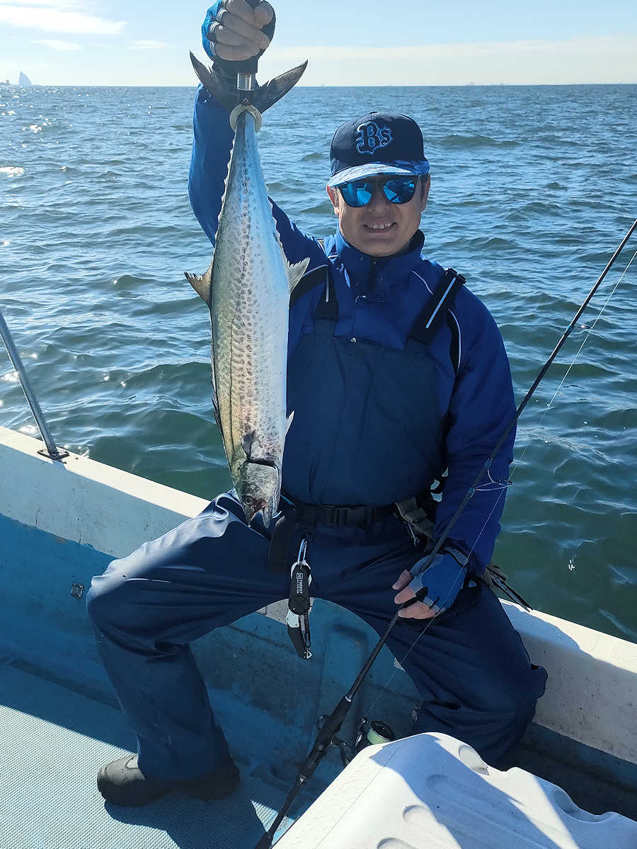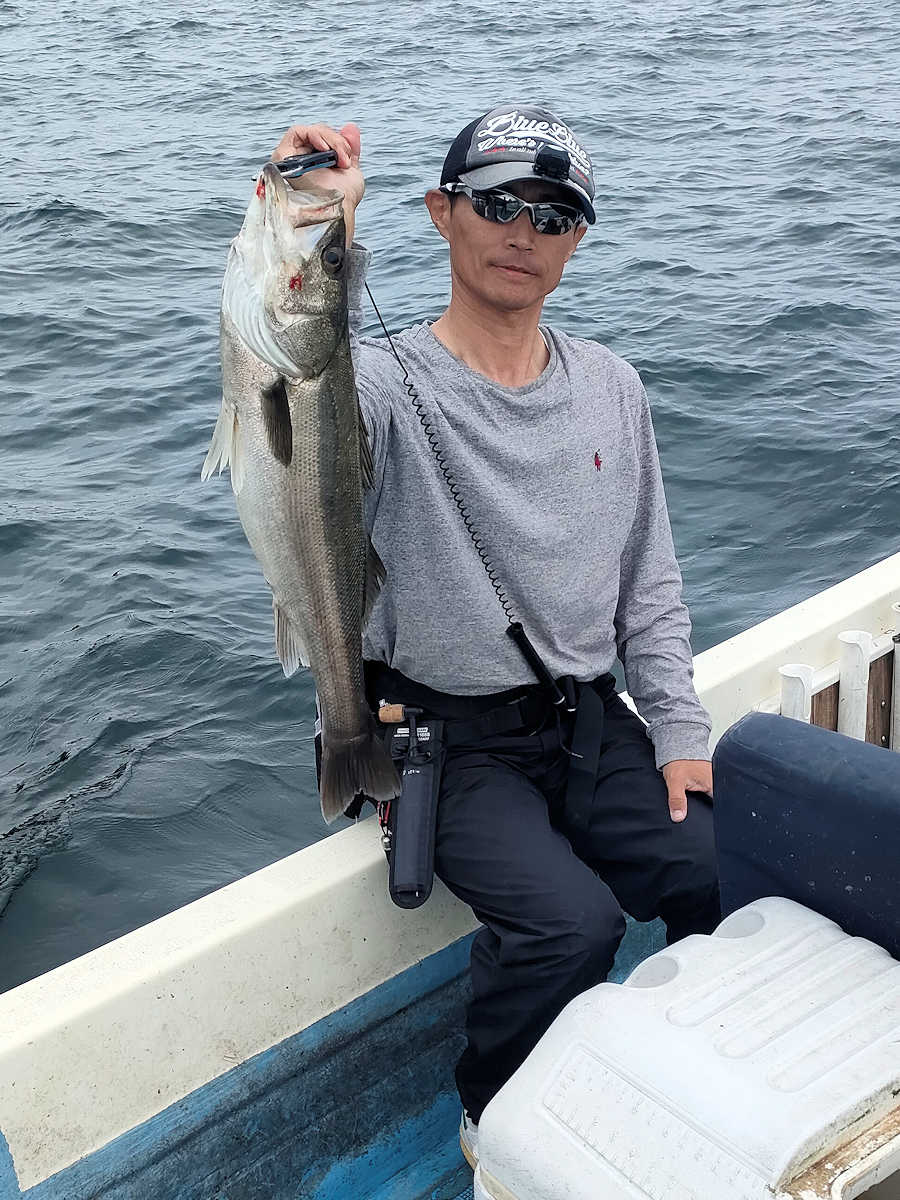 ■シーバス・デイ×20匹 +35~45cmのチイサイズ×8匹ぐらい ■サワラ級×1匹(75cm前後) ■タチウオ×1匹(指3本半) ■コメント エンジン修理で長々お休みとなり、ご予約を頂いたお客さま、申し訳ございませんでした。 修理完了後、前日の土曜日は風がヤヤ強く出船中止。 この日も10時頃までヤヤ強い風ですが、11時頃から徐々に収まる予報なので待ちに待った出船となりました。 まずはシーバス狙いからスタート! 前半は風が避けられるポイントを探りましたが、35~45cmのチイサイズを3匹キャッチしただけで撃沈!\(-o-)/ 風が弱まって来たのでサワラを1時間ほど狙い、ソムリエさんが1匹キャッチ成功! サワラ狙いはハネやジャンプする姿が見えない関係で、ベイト反応を狙う相変わらずの暇な釣り方なので、アタリが無いとスグに飽きてしまう事が難点! 本日の本命はシーバスなので、サッサとシーバスのポイントへ移動しました。 シーバスはとあるポイント周辺でバイトがたまにある状況で、ポツリ・ポツリとですが60cm級を14匹キャッチ成功!\(^o^)/ 前半のシーバス狙いとは異なりバイトがある事は嬉し事で、キャッチ数は少なめですが楽しめました。 次のポイントへ移動の途中で再びサワラを30分ほど狙い、1回だけ「ゴツン!」とバイトがありましたが、釣れそうな気配がないのでサッサと退散! 最後のシーバスポイントでは40~50cm級がたまにバイトしてくる展開となり、キープサイズを4匹キャッチ! 更に、「ここで最後にしましょう!」のポイントで、運良く80cmジャストがヒットし無事にキャッチ! 「こんな幸運、滅多にないのにね!」で終了となりました。 今年のデイは例年以上に苦戦しています。 魚の入り具合をチェックしていないポイントも多いので、しばらくは走り回る釣りになりそうです。 とは言え、月曜から風・風・風の予報なので、出船中止が続きそうで心配な船頭でした。 ■シーバス・デイ×20匹 +35~45cmのチイサイズ×8匹ぐらい □サイズ:50cm前後×3匹/53cm前後×1匹/56cm前後×1匹ぐらい/60cm前後×13匹/69cm×1匹/80cm×1匹 |