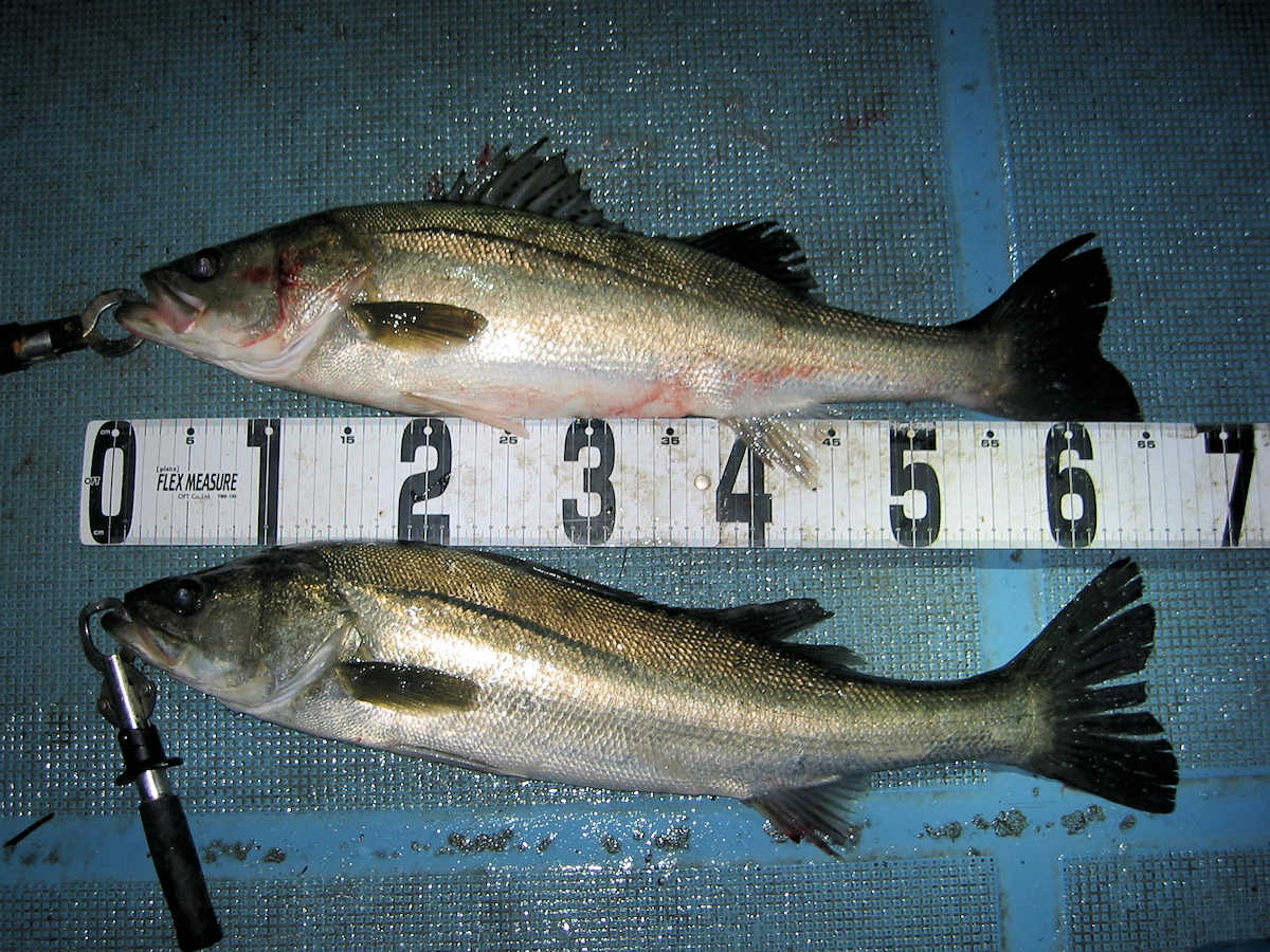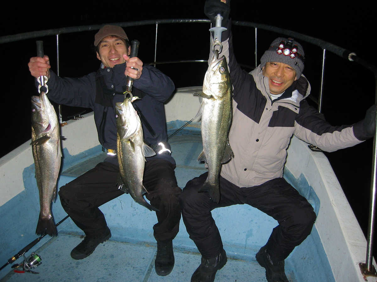 ■シーバス・ナイト×35匹 +放流サイズのヒット×7匹ぐらい ■シーバス・デイ×5匹 +放流サイズのヒット×25~35匹? ■コメント 風が強く5日ぶりの出船となりましたが、ナイトのポイントで幸先良く60㎝級の群れを発見し、クーラー満タンの楽しい釣りとなりました。 5日間出船していないと狙い目のポイントに魚が入っているかわからないので、一発勝負の釣りとなります。 狙い目にシーバスの群れが入っていることを祈り釣り始めると、一流し目からヒットし無事にキャッチ! 続いてダブルヒットでキャッチ&写真をパチリ! そんな感じで60㎝級の魚ばかりヒットし、キャッチ&バラシを繰り返し、ナイトでは楽しい釣りとなりました。 デイでは風がヤヤ強い関係から、風が若干避けられるポイントで狙う事となりました。 前半は最悪で、一箇所目は気配感じずノーバイト! 二箇所目は前回の釣行で、80cmを含め4匹キャッチしたポイントでしたが気配感じずノーバイト! 三か所目ではフッキーを1匹キャッチしただけ。 四か所目は気配感じずノーバイト! 五箇所目でやっとシーバスを発見! 40㎝前後の放流サイズがメインでしたが、前半釣れなかったのでルアーに反応がある事は嬉しい。 このポイントではキープサイズが4匹だけでしたが、ソコソコ楽しめたので終了となりました。 最終的に無事釣れて良かったです。 ■シーバス・ナイト×35匹 +放流サイズのヒット×7匹ぐらい □サイズ:58cm前後×4匹ぐらい/60cm前後×25匹ぐらい/64cm前後×5匹/67cm×1匹 ■シーバス・デイ×5匹 +放流サイズのヒット×25~35匹? □サイズ:50cm前後×2匹/58cm前後×2匹ぐらい/60cm前後×1匹 |