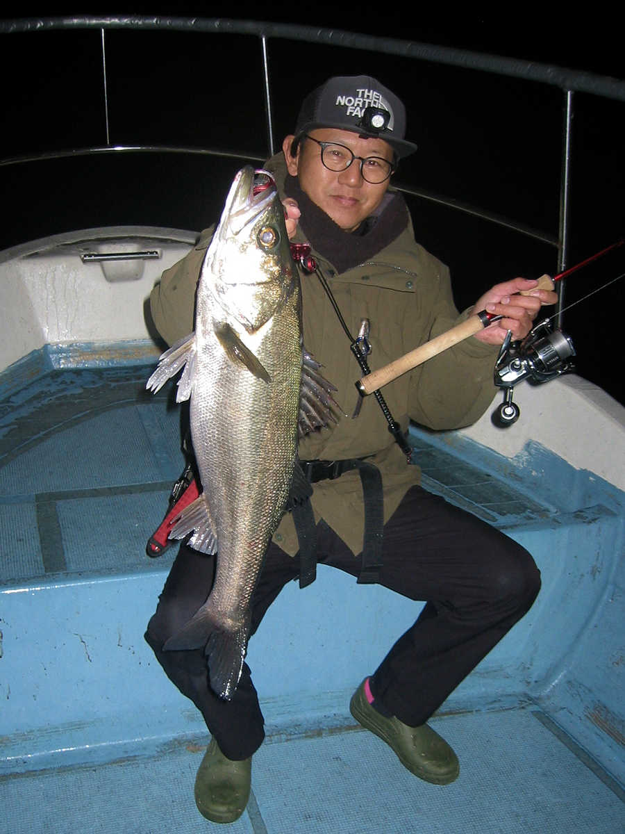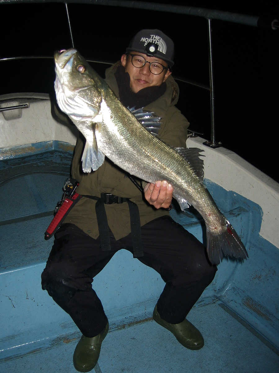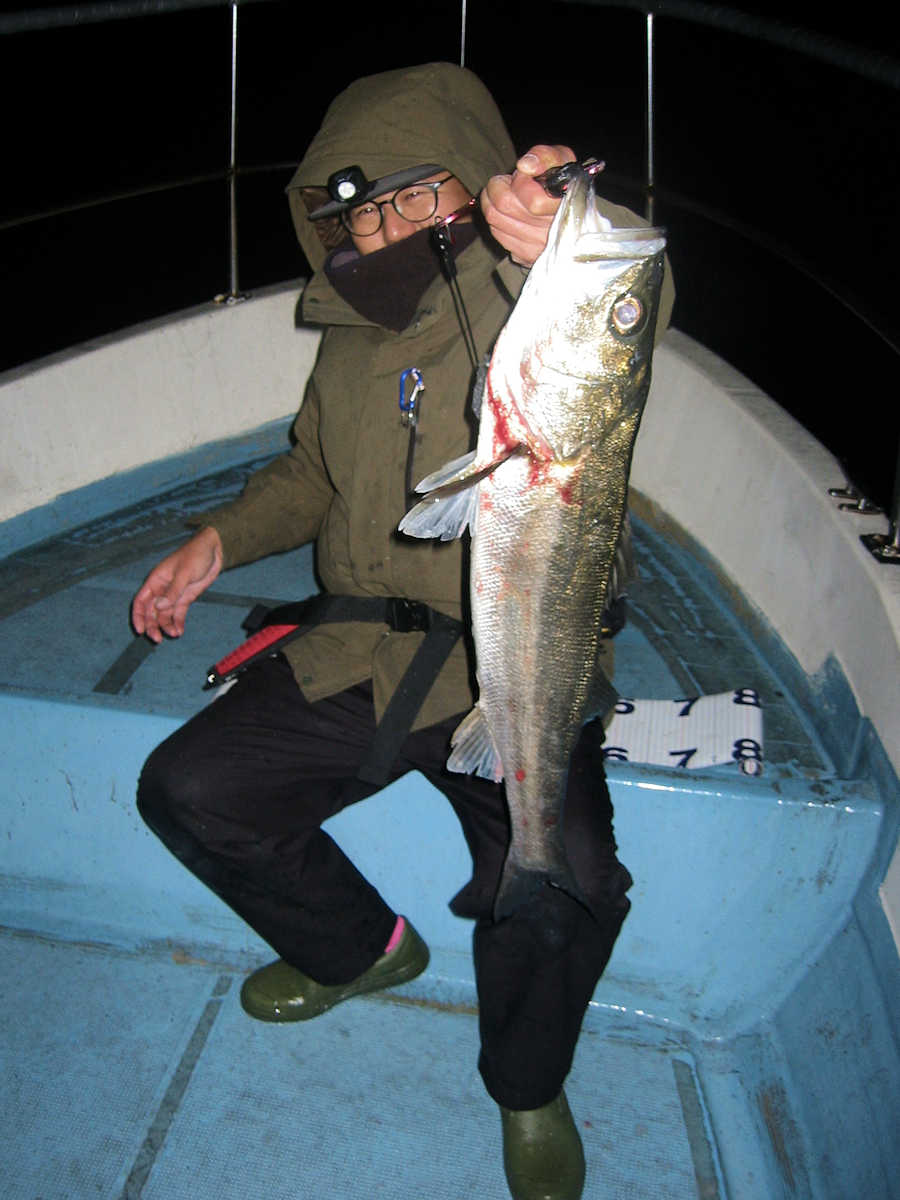 ■シーバス・ナイト×54匹 +50㎝前後の放流サイズ×4匹 ■シーバス・デイ×3匹 +ちいサイズのヒット×8匹ぐらい ■サワラ級×4匹 ■コメント 幸運な事に3日連続で楽しい釣りができ、久しぶりにクーラー2個満タンの大漁となりました。 船頭としては2日連続で釣れた場合、ポイントから魚が出てしまわないかとても心配です。 なので、3日目の釣行では『お客様なのがっかりした顔を見たくない』ので、プレッシャーを強く感じます。 釣りを開始すると、この日も狙い目のポイントに魚がおり、効率良くキャッチ数を伸ばす事ができました。 釣れるサイズは前日と同じで60~63㎝級がメインでしたので、キャッチ数は少なくともクーラー2個満タンとなりました。 いや~、3日連続で釣れて良かったです♪ 明るくなりデイのポイントへ移動。 一箇所目のポイントでは30~40㎝級が3匹ヒットしただけ。 二箇所目はシ~~ン! 三箇所目で、前日釣れたポイントを探るがシ~~ンがメインで、極たまにバイトがあるパターン! そこでキープサイズを3匹キャッチしただけでした。 そんな苦戦中に釣り仲間から「サワラのハネが出ているよ!」連絡があり、苦戦中のシーバス狙いを終了しポイントへ向かう事に! 到着すると少数の鳥ちゃんがサワラの居場所を教えてくれる、大変嬉しいパターンでした! で、熱いポイントに何度か間に合い、7ヒットし、70cmアップを4匹キャッチ出来ました。 昔は鳥ちゃんを追い掛ける釣り方がメインでしたが、近年は鳥ちゃんが消え、ハネやジャンプする姿が見れないサワラ狙いが続いていましたが、やはりサワラ狙いはハネ狙いが楽しいですね! ■シーバス・ナイト×54匹 +50㎝前後の放流サイズ×4匹 □サイズ:55cm前後×4匹ぐらい/58cm前後×3匹ぐらい/61cm前後×24匹ぐらい?/64cm前後×20匹ぐらい?/67cm×1匹/70cm×1匹/72cm×1匹 ■シーバス・デイ×3匹 +ちいサイズのヒット×8匹ぐらい □サイズ:50cm前後×1匹/57cm前後×1匹/60cm前後×1匹 ■サワラ級×4匹(70cm越え) |