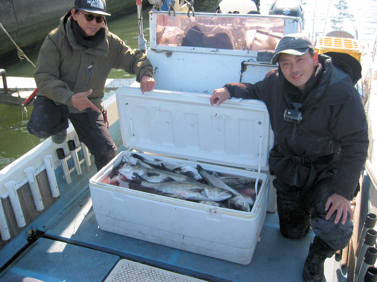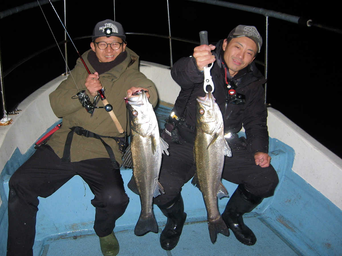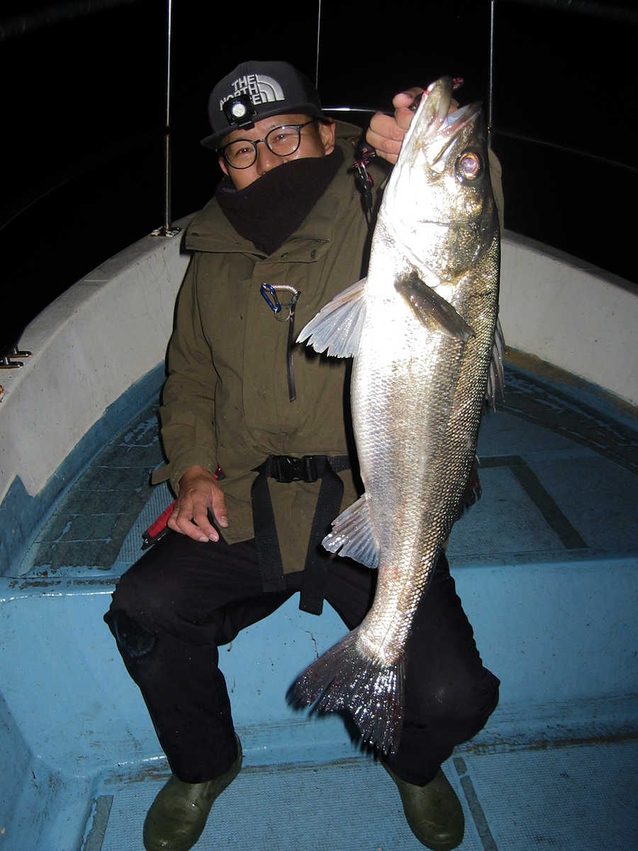 ■シーバス・ナイト×54匹 +50㎝前後の放流サイズ×4匹 ■シーバス・デイ×3匹 +ちいサイズのヒット×8匹ぐらい ■サワラ級×4匹 ■コメント 幸運な事に3日連続で楽しい釣りができ、久しぶりにクーラー2個満タンの大漁となりました。 船頭としては2日連続で釣れた場合、ポイントから魚が出てしまわないかとても心配です。 なので、3日目の釣行では『お客様なのがっかりした顔を見たくない』ので、プレッシャーを強く感じます。 釣りを開始すると、この日も狙い目のポイントに魚がおり、効率良くキャッチ数を伸ばす事ができました。 釣れるサイズは前日と同じで60~63㎝級がメインでしたので、キャッチ数は少なくともクーラー2個満タンとなりました。 いや~、3日連続で釣れて良かったです♪ 明るくなりデイのポイントへ移動。 一箇所目のポイントでは30~40㎝級が3匹ヒットしただけ。 二箇所目はシ~~ン! 三箇所目で、前日釣れたポイントを探るがシ~~ンがメインで、極たまにバイトがあるパターン! そこでキープサイズを3匹キャッチしただけでした。 そんな苦戦中に釣り仲間から「サワラのハネが出ているよ!」連絡があり、苦戦中のシーバス狙いを終了しポイントへ向かう事に! 到着すると少数の鳥ちゃんがサワラの居場所を教えてくれる、大変嬉しいパターンでした! で、熱いポイントに何度か間に合い、7ヒットし、70cmアップを4匹キャッチ出来ました。 昔は鳥ちゃんを追い掛ける釣り方がメインでしたが、近年は鳥ちゃんが消え、ハネやジャンプする姿が見れないサワラ狙いが続いていましたが、やはりサワラ狙いはハネ狙いが楽しいですね! ■シーバス・ナイト×54匹 +50㎝前後の放流サイズ×4匹 □サイズ:55cm前後×4匹ぐらい/58cm前後×3匹ぐらい/61cm前後×24匹ぐらい?/64cm前後×20匹ぐらい?/67cm×1匹/70cm×1匹/72cm×1匹 ■シーバス・デイ×3匹 +ちいサイズのヒット×8匹ぐらい □サイズ:50cm前後×1匹/57cm前後×1匹/60cm前後×1匹 ■サワラ級×4匹(70cm越え) |