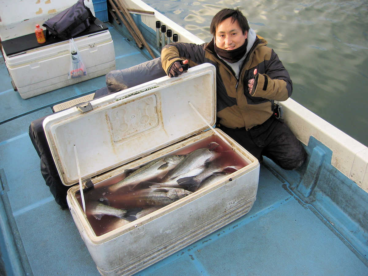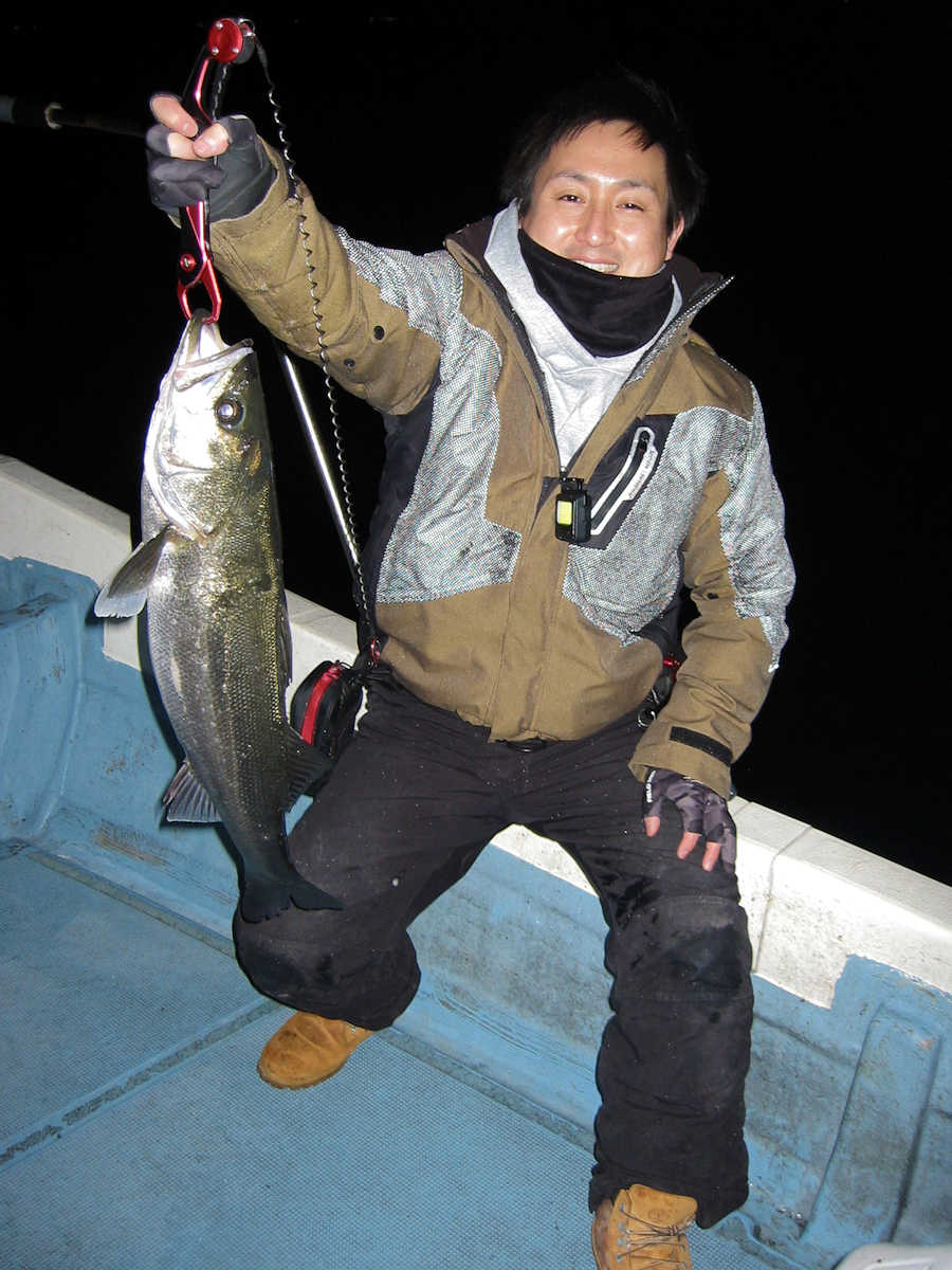 ■シーバス・ナイト×26匹 +放流サイズ×1匹 ■サワラ級×前日とは別のコースをクルージングし発見できず! ■コメント この日は、ナイトでシーバスを狙った後、サワラを狙うコースで出船しました。 前日好調だったシーバスは、各ポイントでチョロっとしか釣れない&全く反応がないのパターンでしたので、アチコチのポイントを走り少しずつ追加してゆきました。 結果、ポイント移動に時間がかかり釣果が伸びませんでしたが、無事に釣れて良かったです。 ちなみに、70cm前後が出たら写真を撮影しようと思っていたので写真は1枚だけでした。 65cm級を撮影しておけば良かったと後悔。ペコリ 明るくなりサワラ狙いに変更。 風がヤヤ強い状況でしたので、前日とは別の、風が少し避けられるポイントを見に行く。 しかし、こちらの方面も鳥すら居ない状況でお手上げ! 結果、クルージングで終了してしまいました。トホホ ■シーバス・ナイト×26匹 +放流サイズ×1匹 □サイズ:55cm前後×2匹ぐらい/57cm前後×6匹ぐらい/60cm前後×13匹ぐらい/65cm前後×5匹ぐらい |