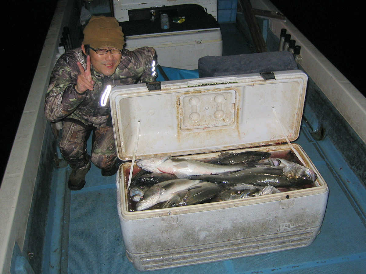 ■シーバス・ナイト×36匹 ■コメント 好調のシーバス狙い、この日も太った60cm級が多く、クーラー満タンで楽しい釣りとなりました。 いや~、良かった・良かった! ちなみに、前半はバラシが多めでしたが、中盤以降、巻きアワセのコツがわかってくるとバラシが減り、ヒットした魚を約90%の確率でキャッチし続けました。 お見事でした! ■シーバス・ナイト×36匹 □サイズ:57cm前後×8匹ぐらい/60cm前後×12匹ぐらい/63cm前後×10匹ぐらい/66cm前後×6匹 |